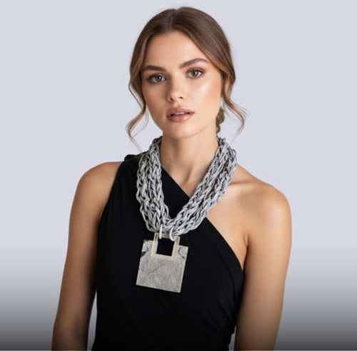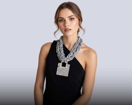 Our curated jewelry collection is crafted using high-quality materials, including horn, shell, resin, wood, and pearls.