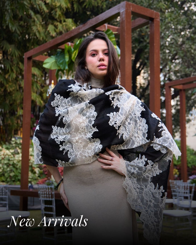 At Maneesha Ruia, we offer a range of accessories, scarves, wraps, cardigans, ponchos, jackets, and a curated jewelry collection with earrings, bracelets, and necklaces on our website and partner boutiques.