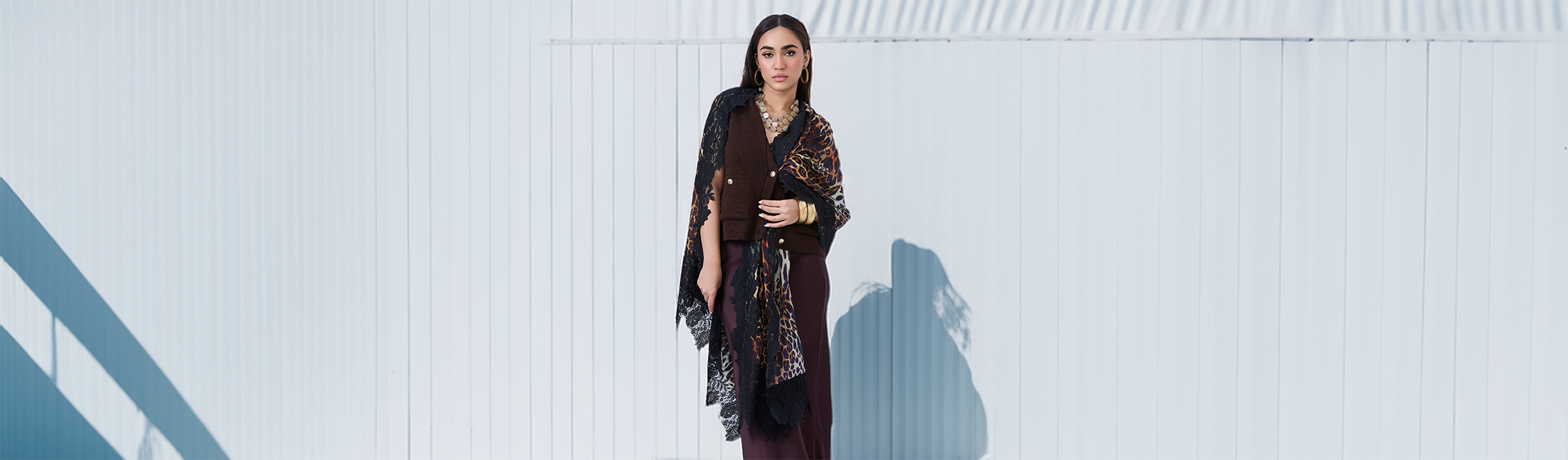 On the opposite end of the spectrum, a white scarf softens and refines. It's not just a spring staple — it's a wardrobe stabilizer. An ivory linen and modal scarf edged with double lace borders adds texture and femininity to structured blazers or crisp shirting.