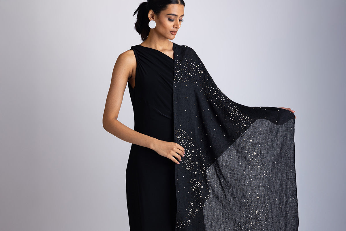 Discover New Arrivals of Sustainable Fashion with luxury scarves at Maneesha Ruia for a premium shopping experience. Elevate your lifestyle with Black cashmere scarves, women's designer scarves with Lace Work and Many More.