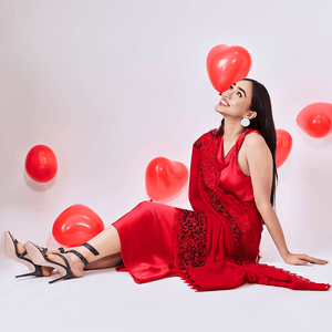Bright Red Cashmere ScarfDull Gold Sequin & Metallic Embroidery