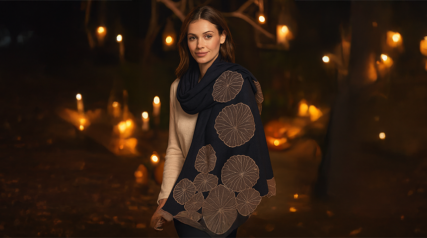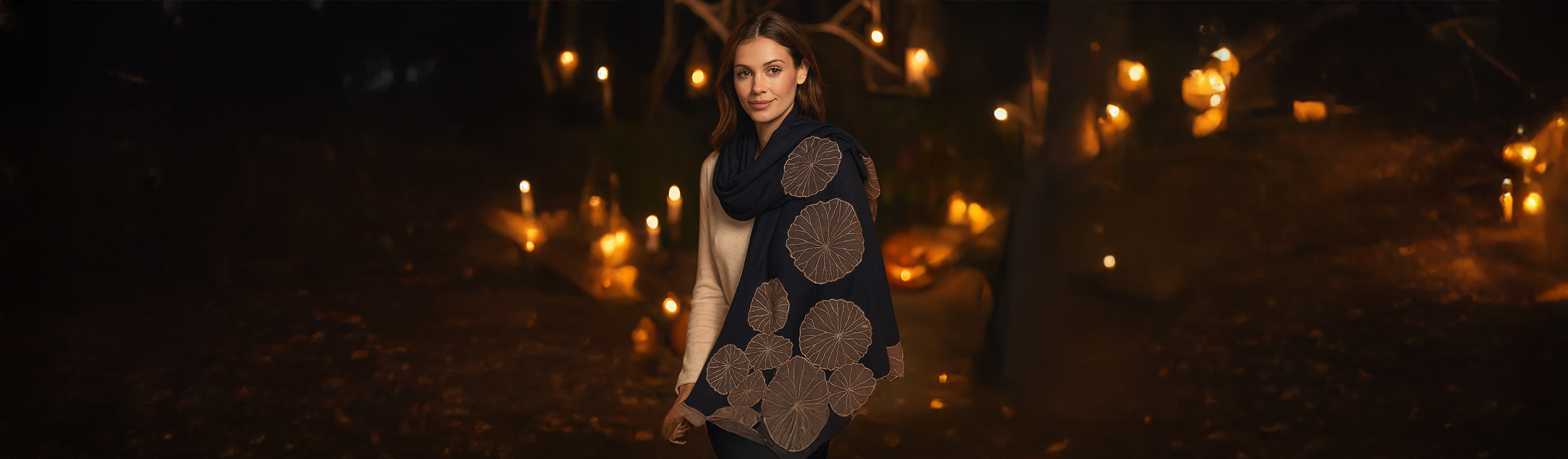 This Halloween, do something different. Add the understated elegance of designer jewellery and handcrafted scarves to your attire to convey a tale of sophisticated drama and enthralling mystery.