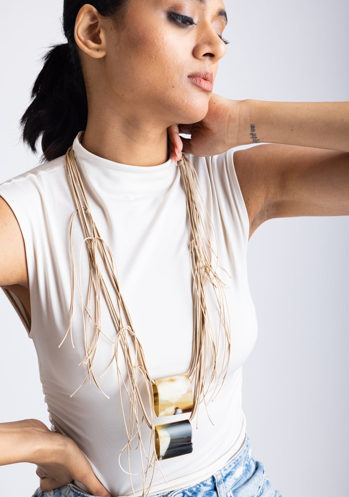 • Horn’s natural variability: Some pieces feature smooth, dark ebony tones, while others showcase marbled caramel and honey hues. This makes every necklace or bracelet a unique statement piece