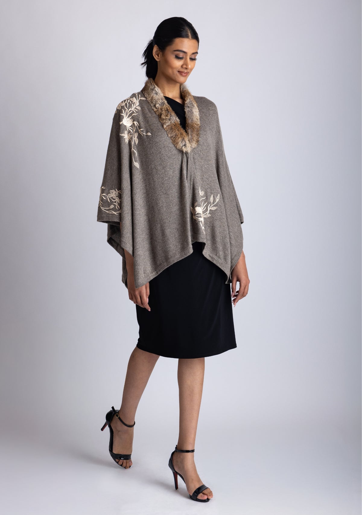 2. Charcoal Mélange Poncho with Feather Appliqué