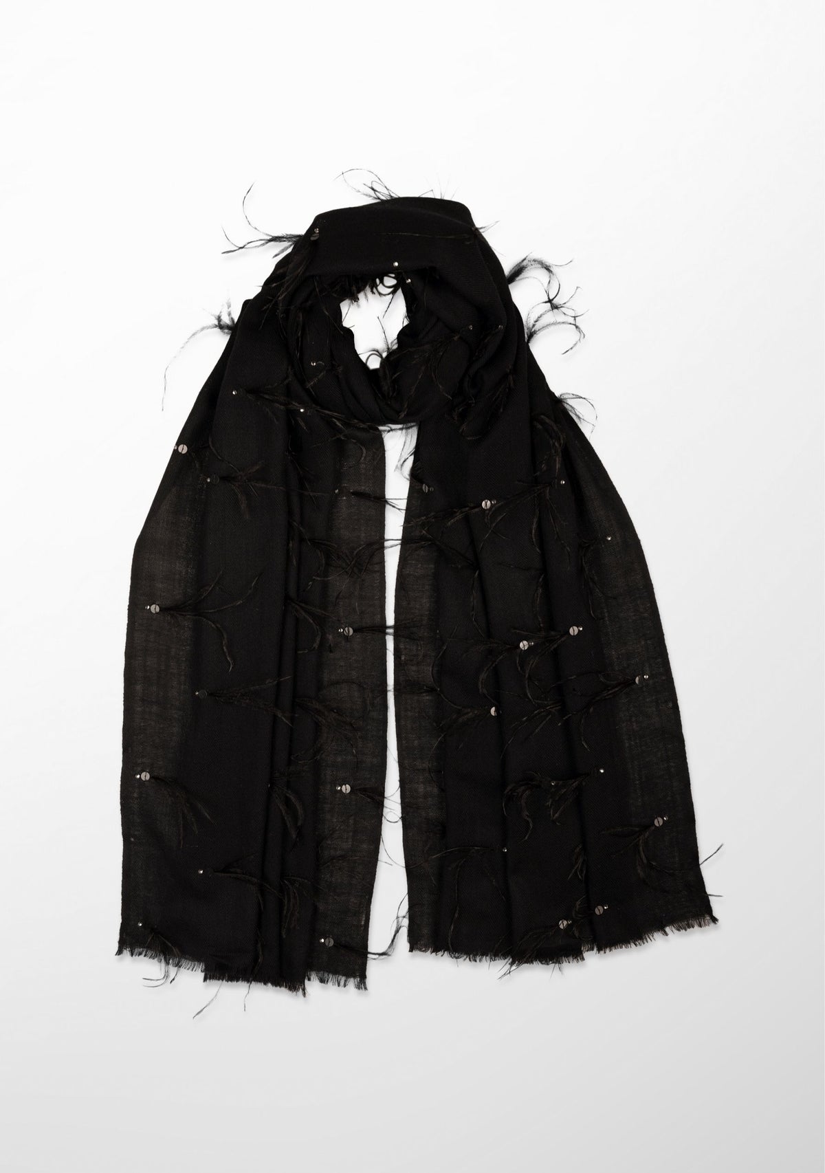 Black Cashmere Pashmina ScarfBlack Ostrich Feathers, Sequin & Antique Silver Swarovski Crystal