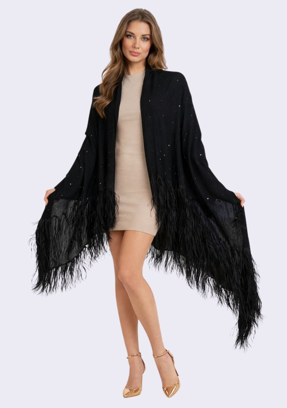 Black Cashmere Pashmina ScarfBlack Ostrich Feathers & Sequin