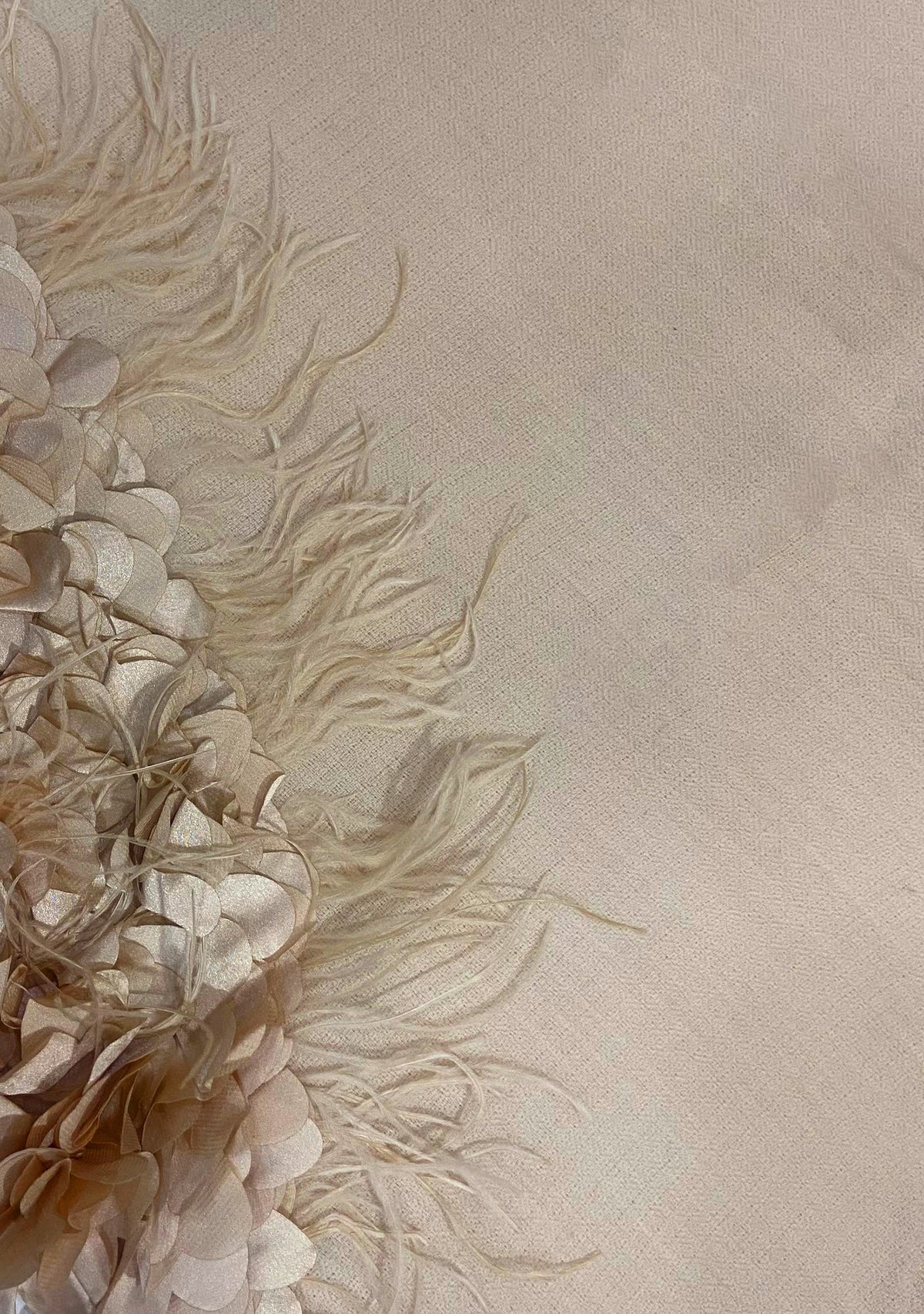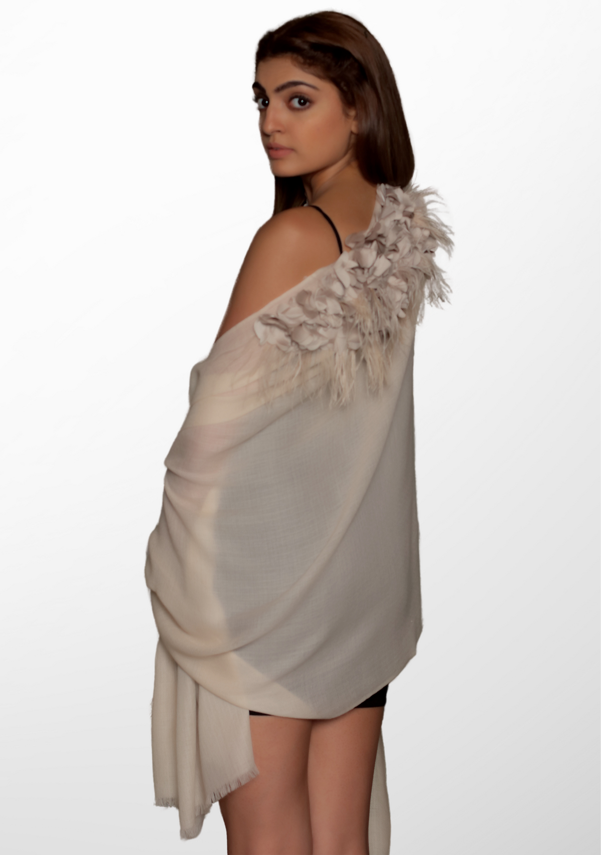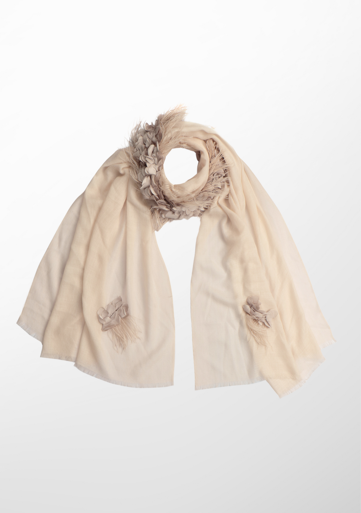 Beige Cashmere ScarfBeige Feather & Satin Appliqués