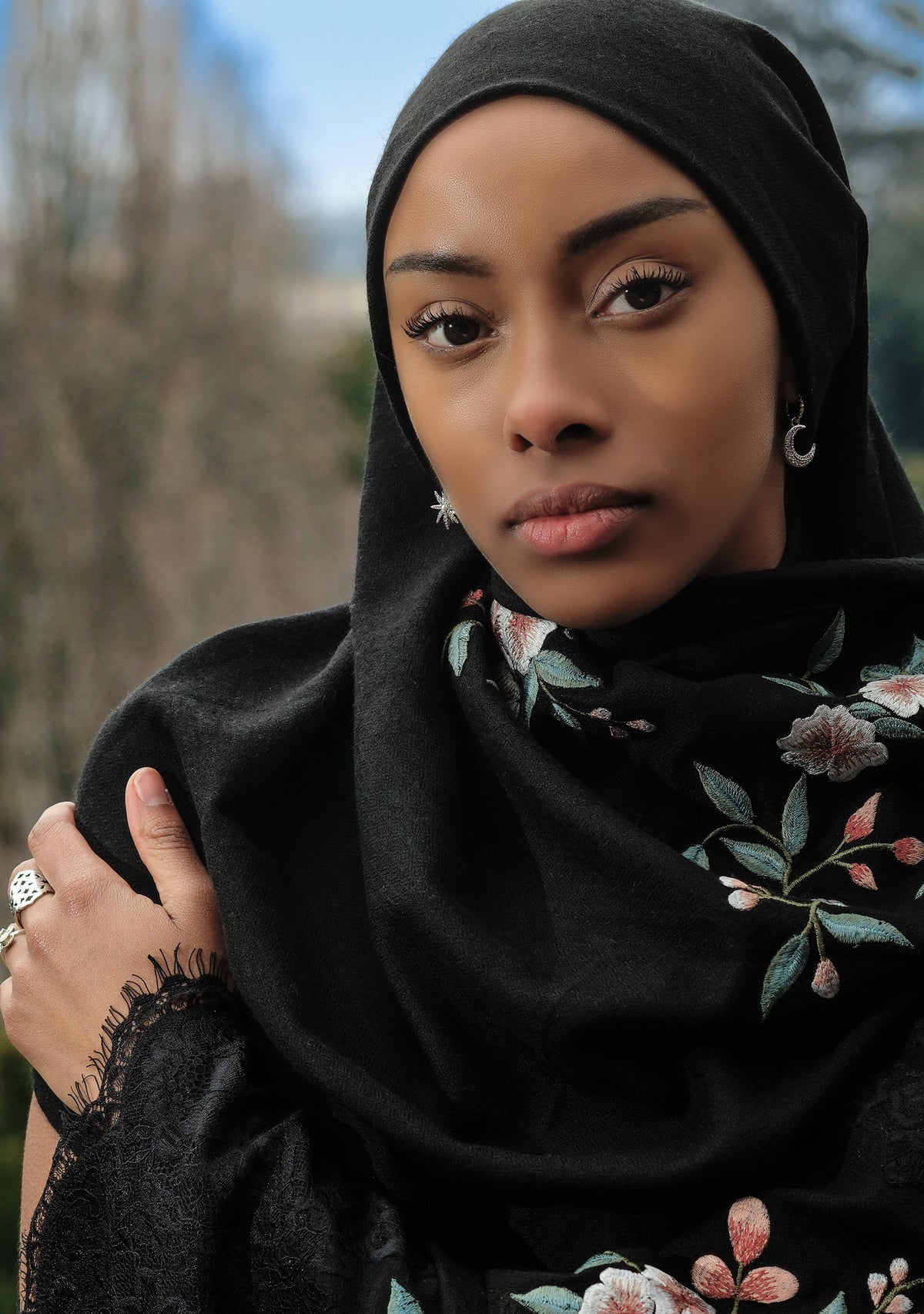 Indulge in the timeless allure of our black cashmere scarf. Its delicate multi-colored floral embroidery combined with tonal black filigree lace at the ends, creates an exquisite blend of sophistication and uniqueness. This scarf offers both warmth and style, making it a must-have accessory for any occasion.
