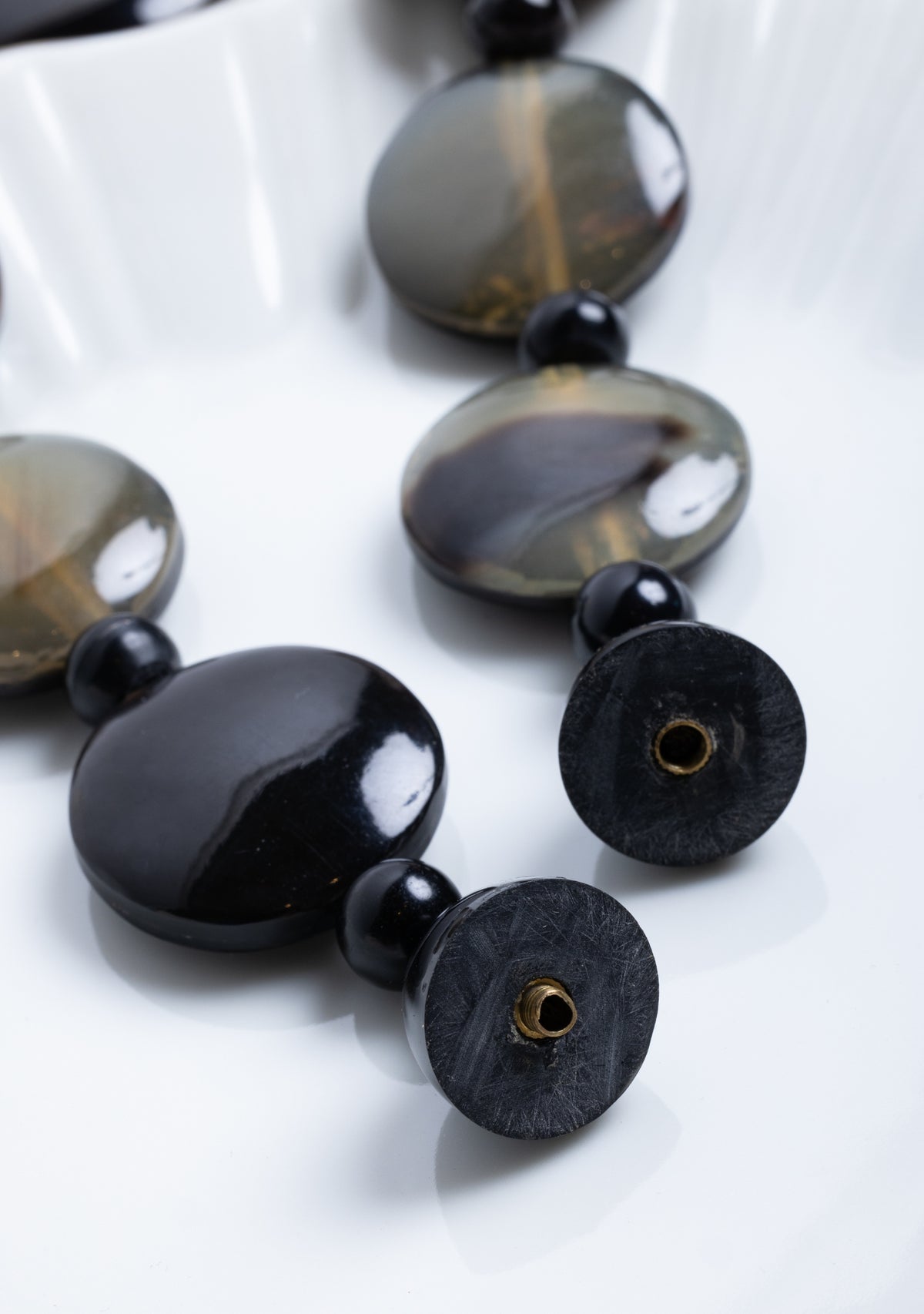 Our curated jewelry collection is crafted using high-quality materials, including horn, shell, resin, wood, and pearls.