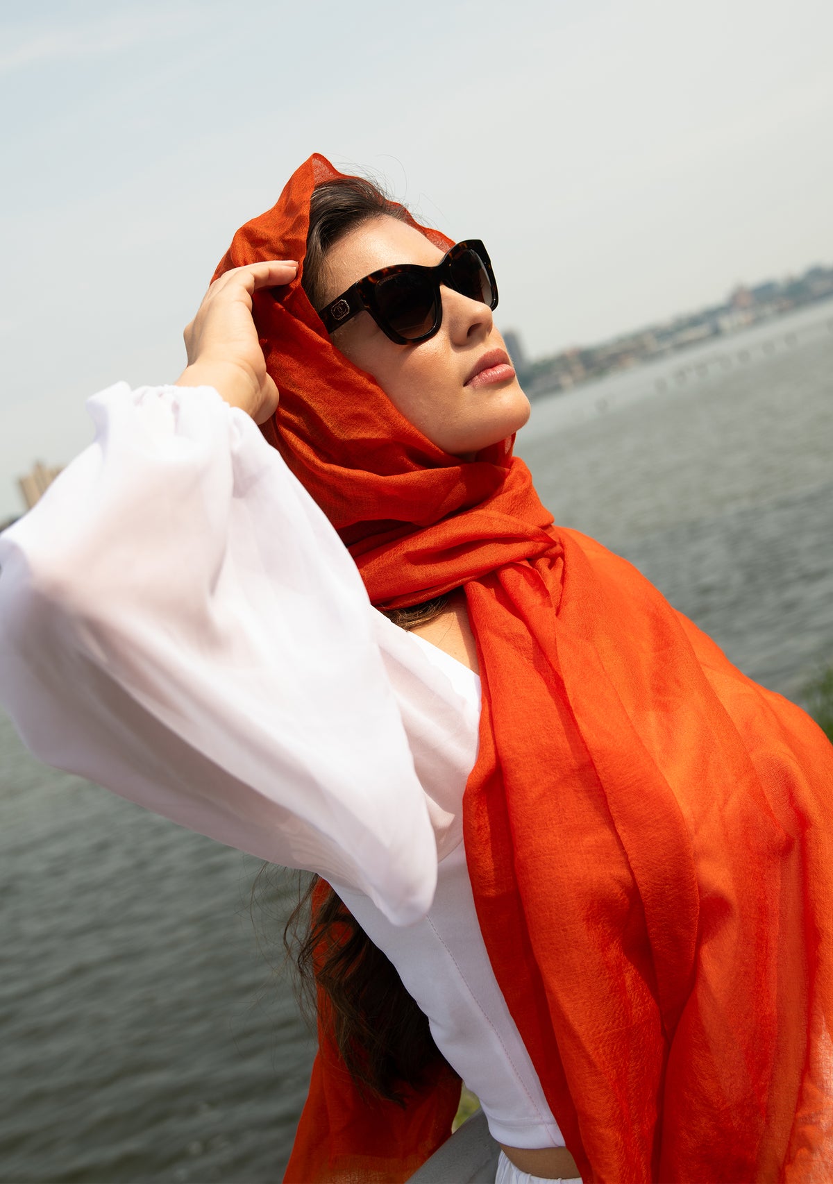 This Tangerine Orange Superfine Cashmere Pashmina Scarf is the most versatile accessory you'll ever own. Its lightweight and breathable weave offers year-round comfort with a supremely soft and fine texture, making it a favourite for both women and men.