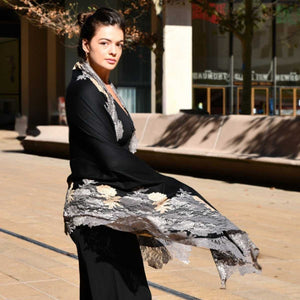 Ivory Cashmere ScarfBlack Embroidery & Ivory Lace