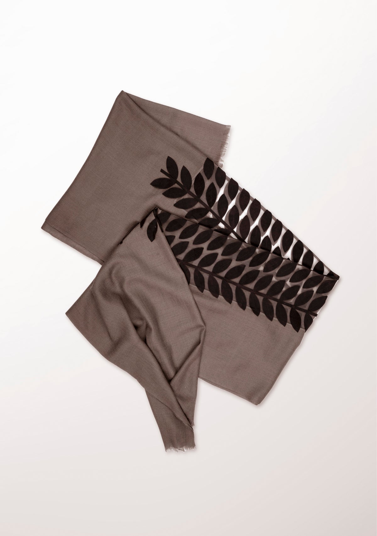 Mousse Cashmere ScarfCharcoal Suede Leather Appliqués