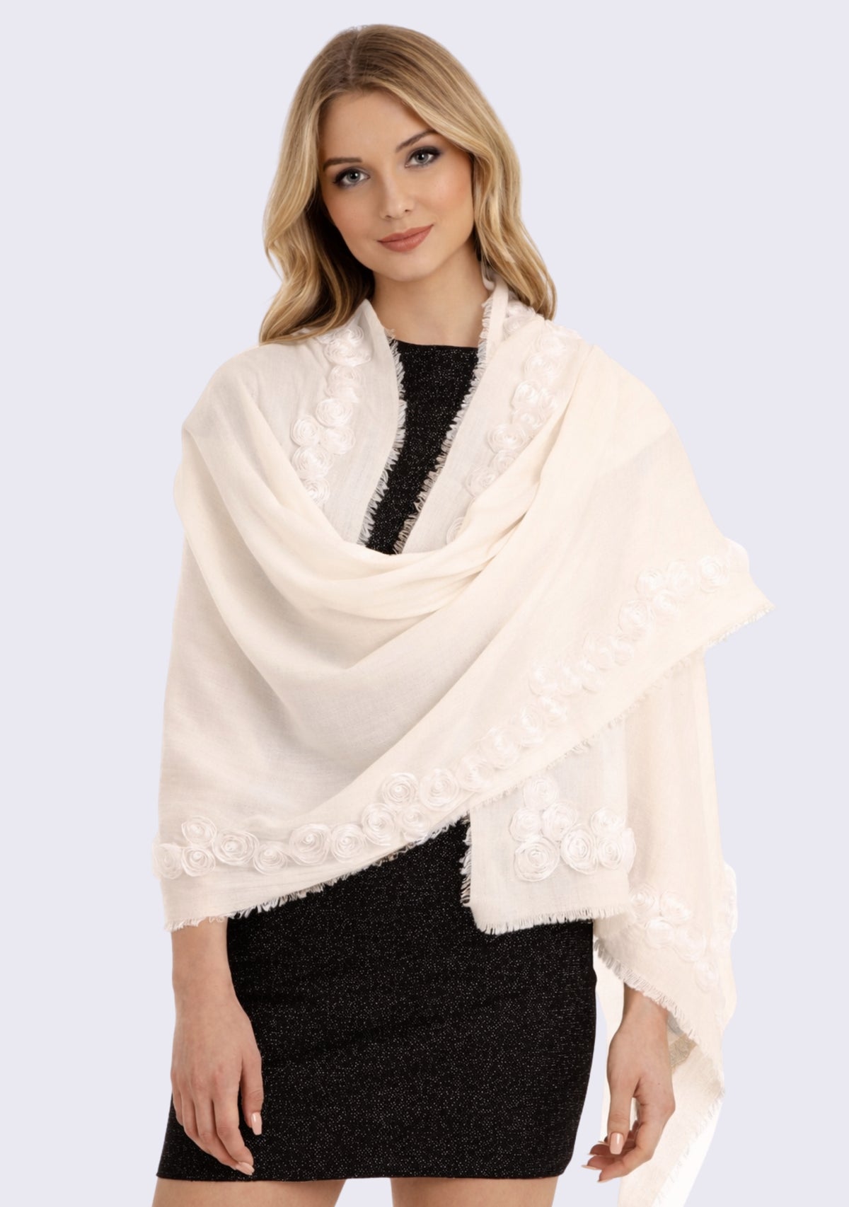 Ivory Cashmere ScarfIvory Ribbon Roses