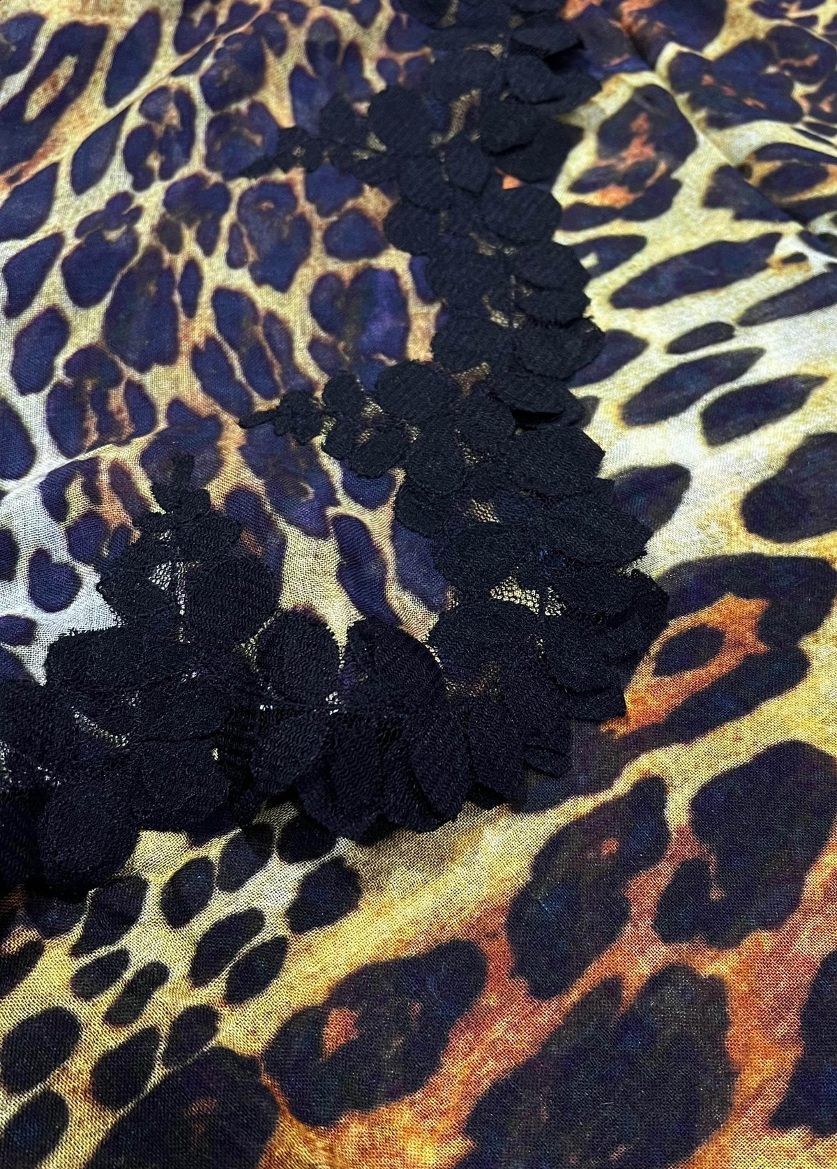 Leopard Print Modal & Silk ScarfBlack Lace