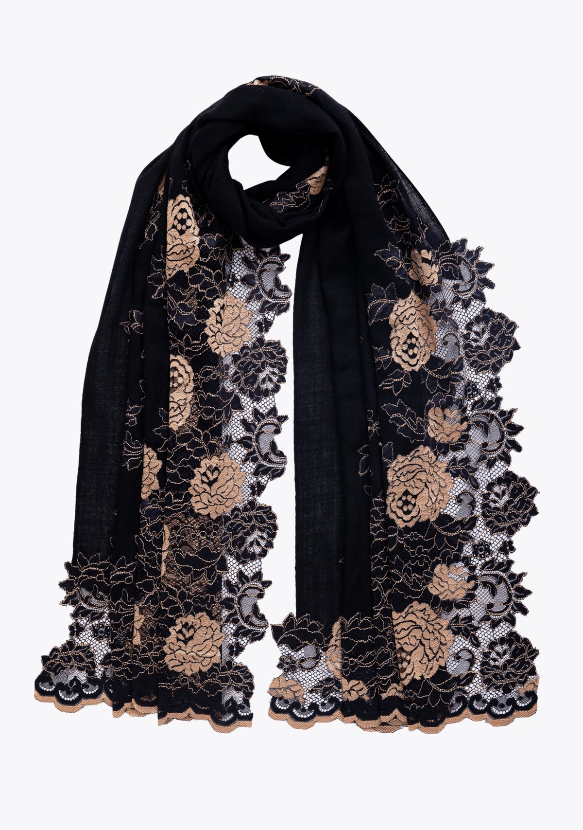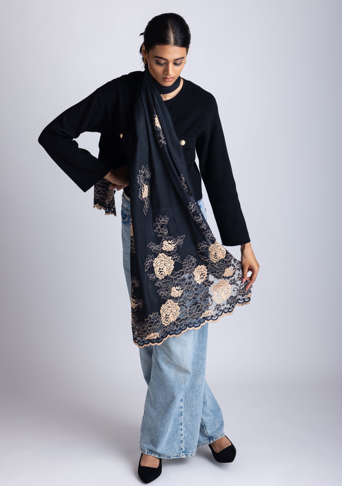 Black Cashmere Scarf Black & Nude Lace Sale priceRs. 37,000.00