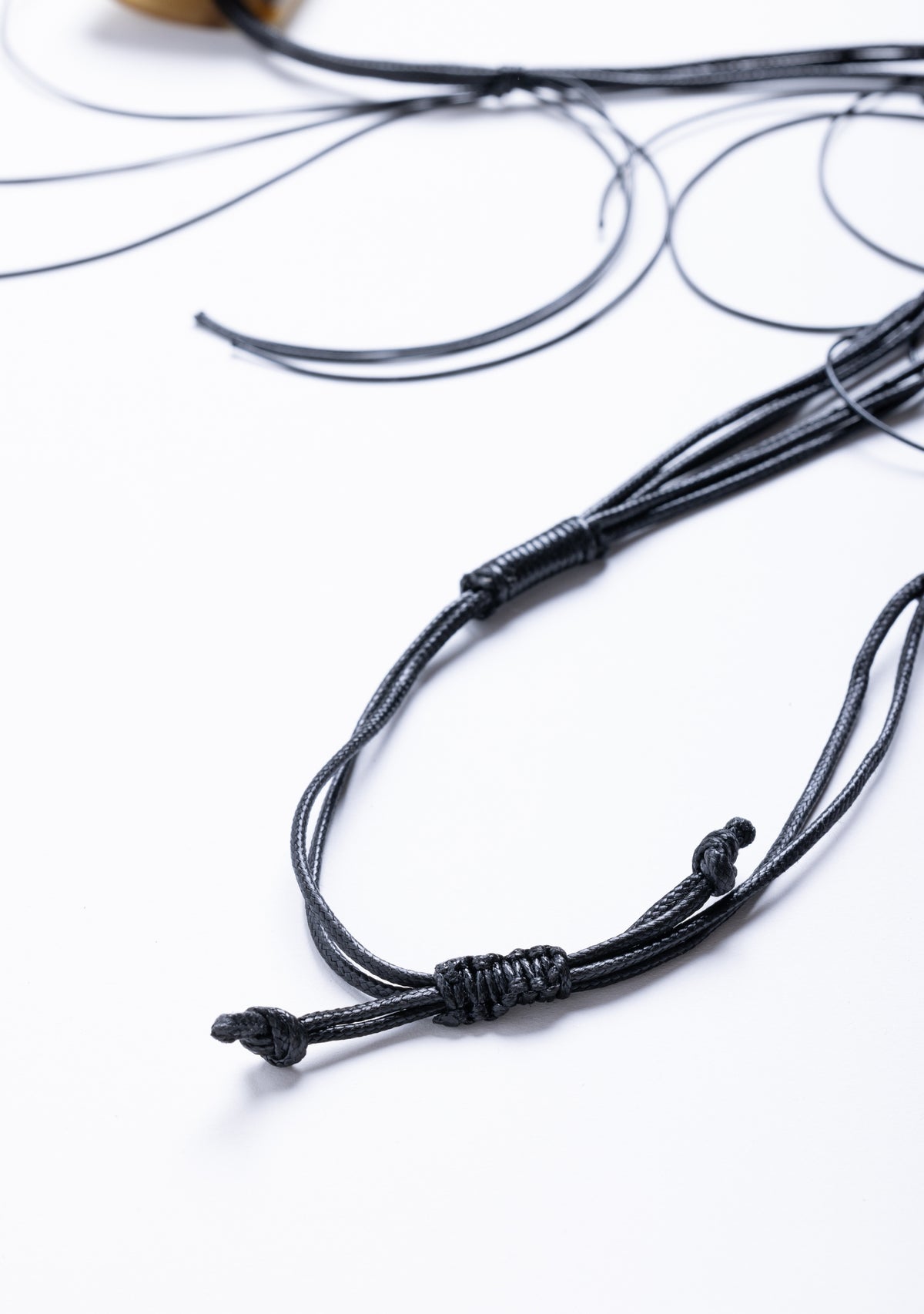 Bunched Black Cord with Dark-Natural-Ivory Buffalo Horn Pendant Necklace Sale priceRs. 11,800.00