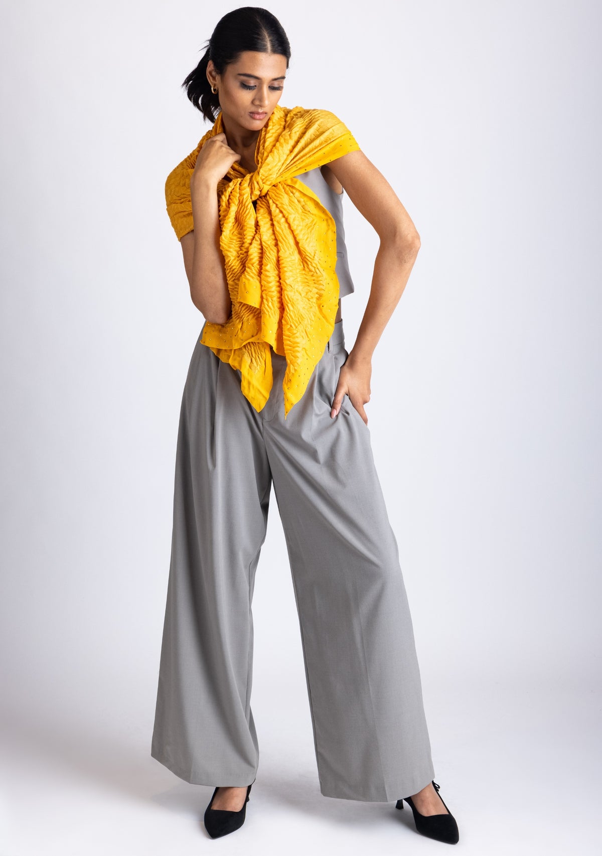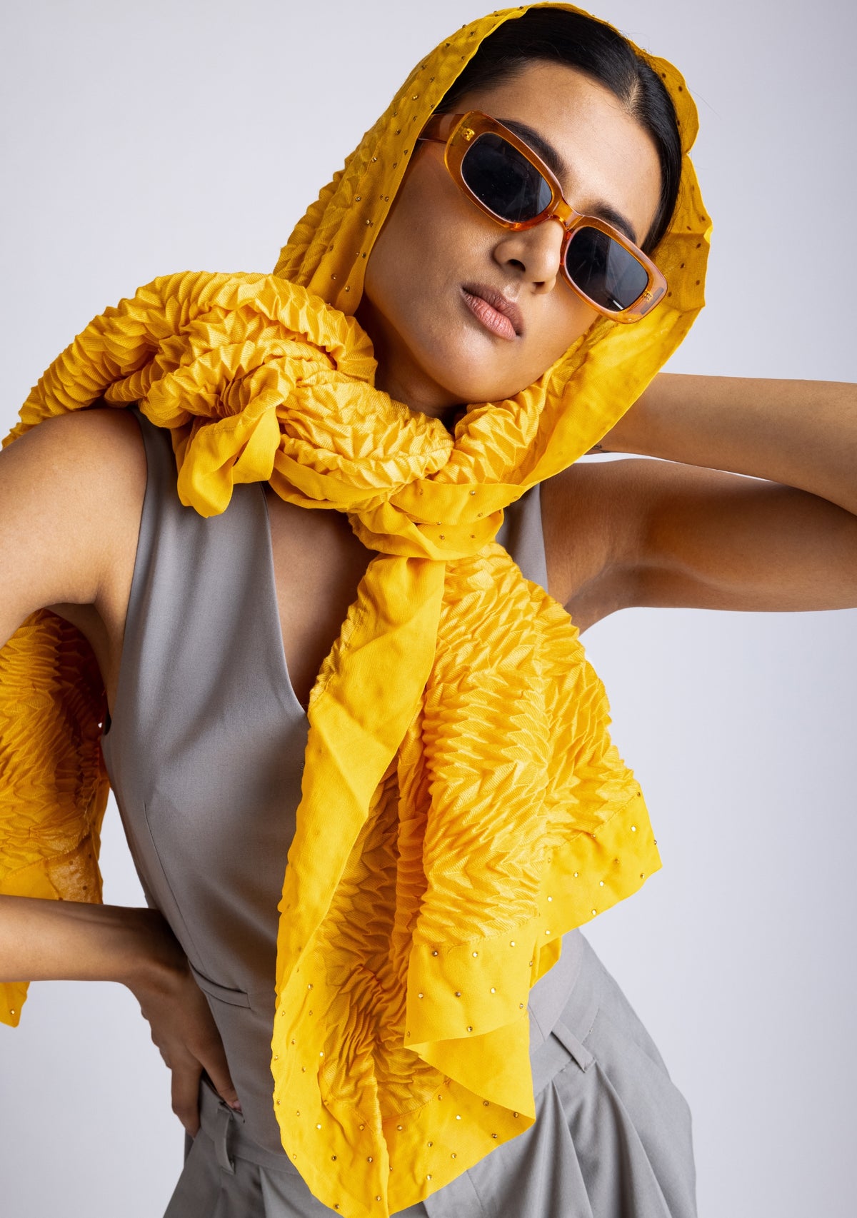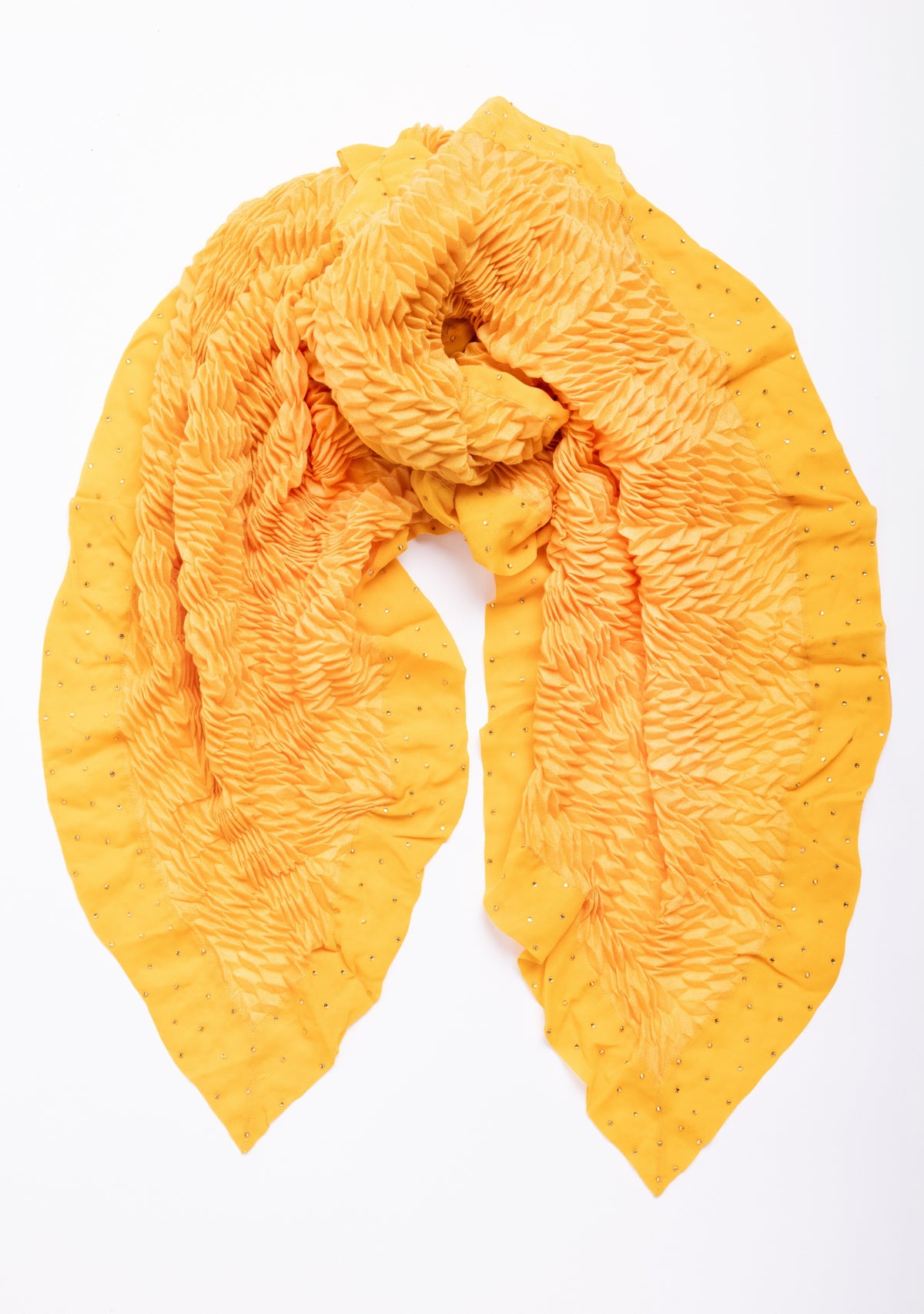 Butterscotch Pleated Wool & Silk Scarf Crystal Border Sale priceRs. 23,500.00