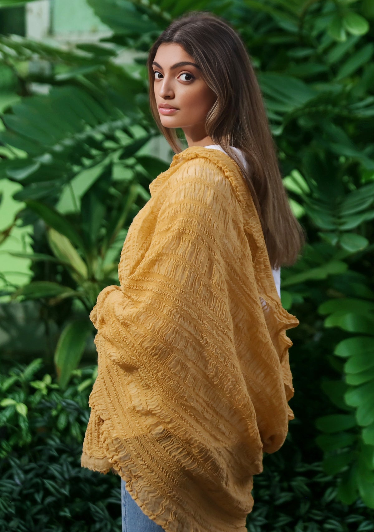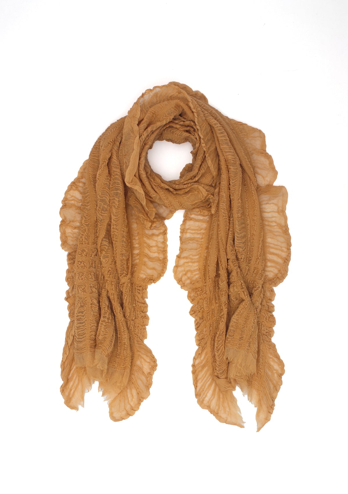 Camel Fine Wool Stretchable Crinkle Scarf Sale priceRs. 13,100.00
