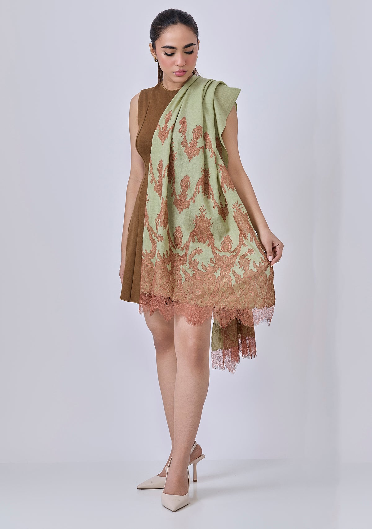 Fern Green Cashmere Scarf Mocha Mousse Lace Sale priceRs. 35,200.00