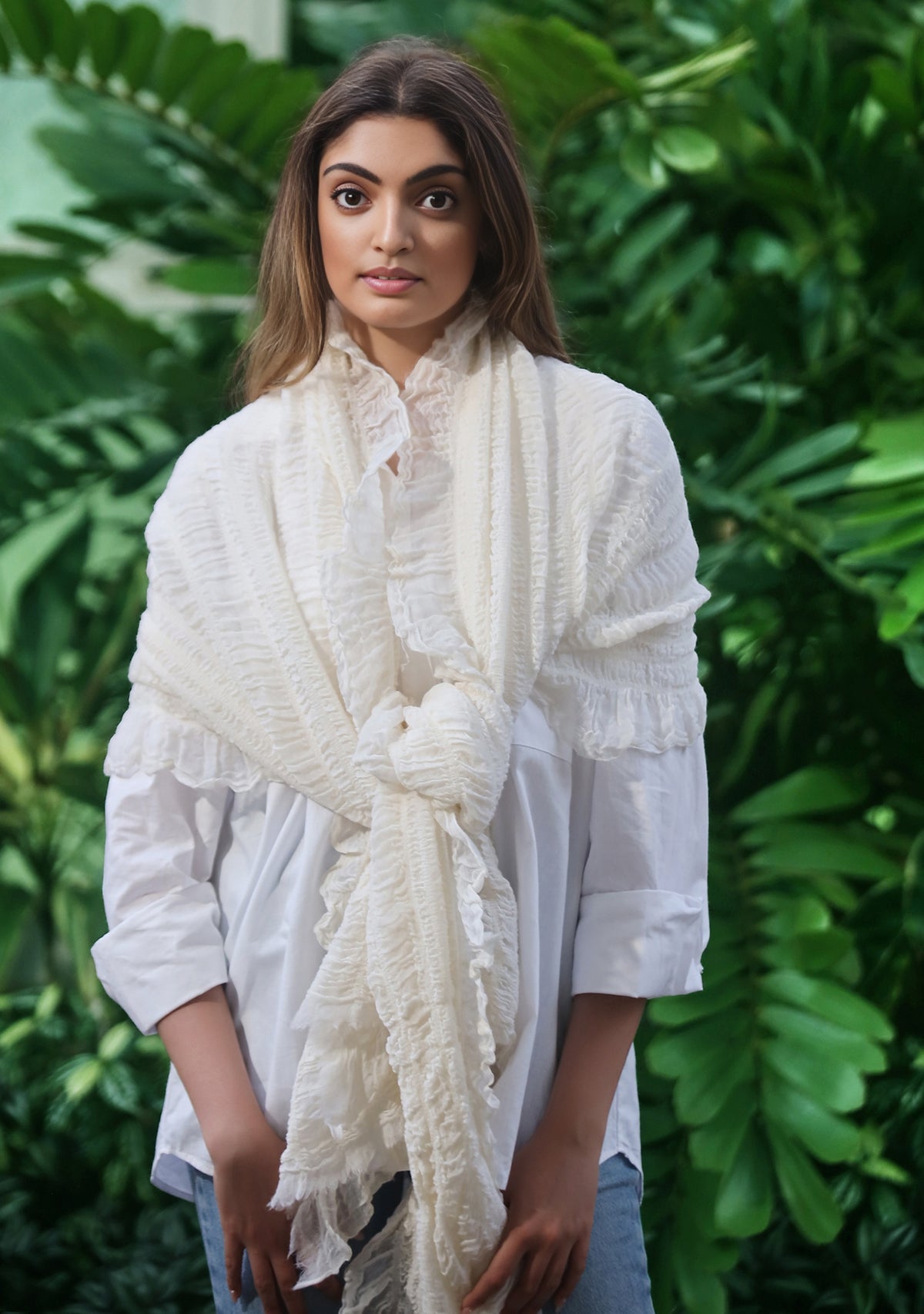 Ivory Fine Wool Stretchable Crinkle Scarf Sale priceRs. 13,100.00