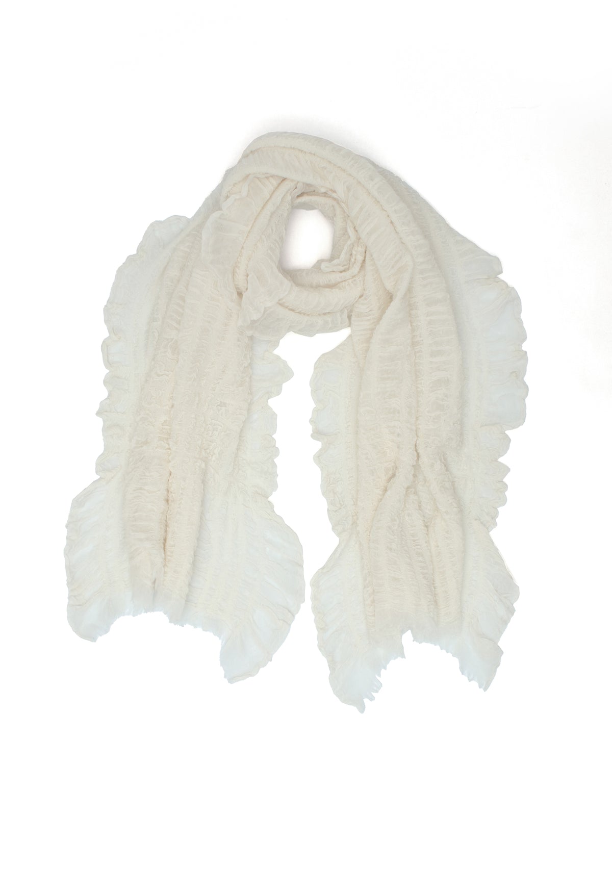 Ivory Fine Wool Stretchable Crinkle Scarf