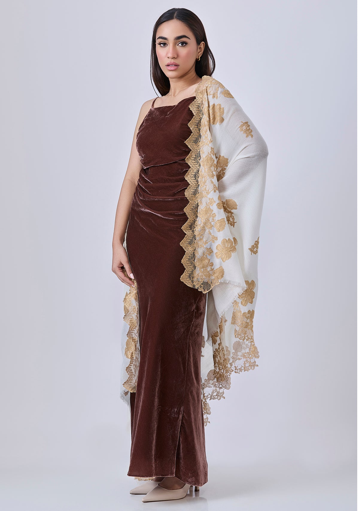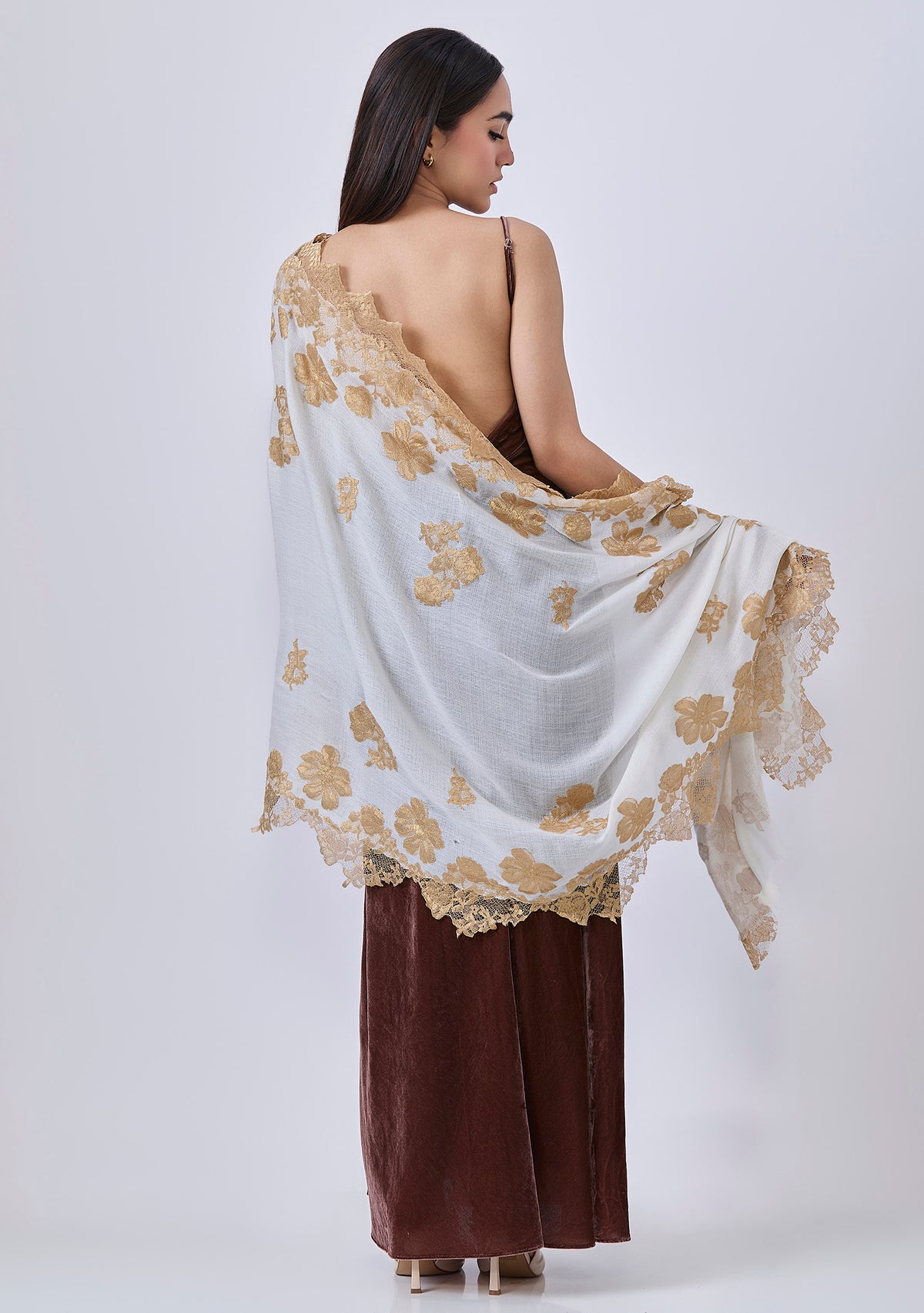 Ivory Cashmere Scarf Gold Lace Sale priceRs. 37,000.00