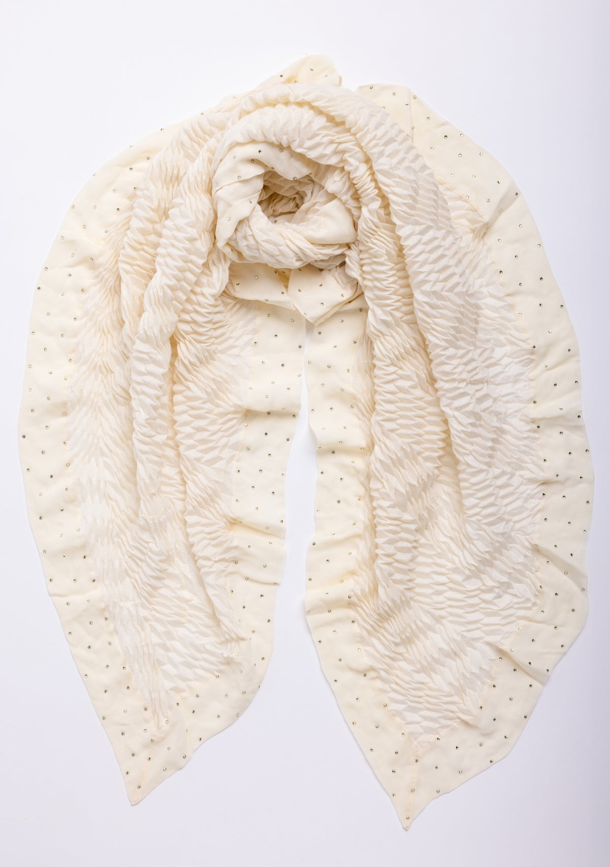 Ivory Pleated Wool & Silk ScarfIvory Georgette & Crystal Border