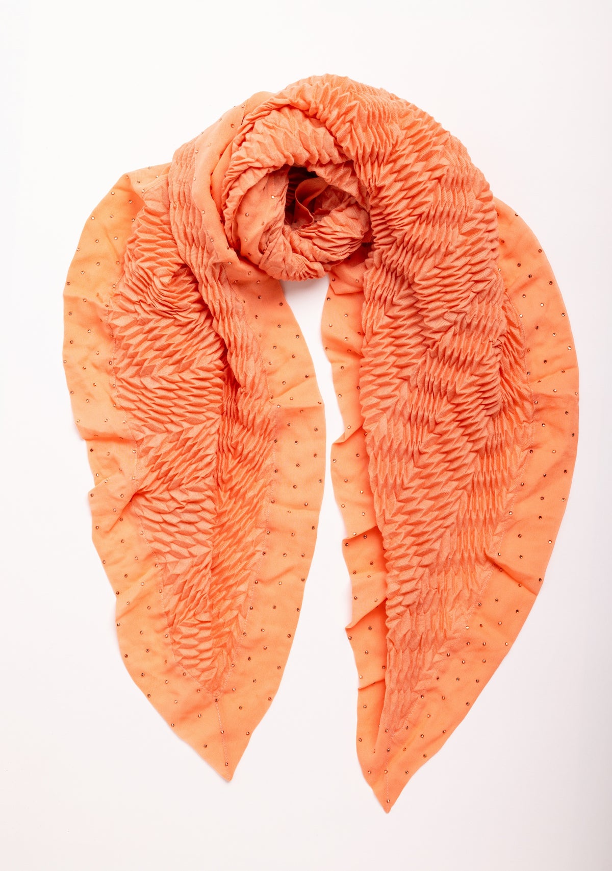 Salmon Pleated Wool & Silk ScarfCrystal Border