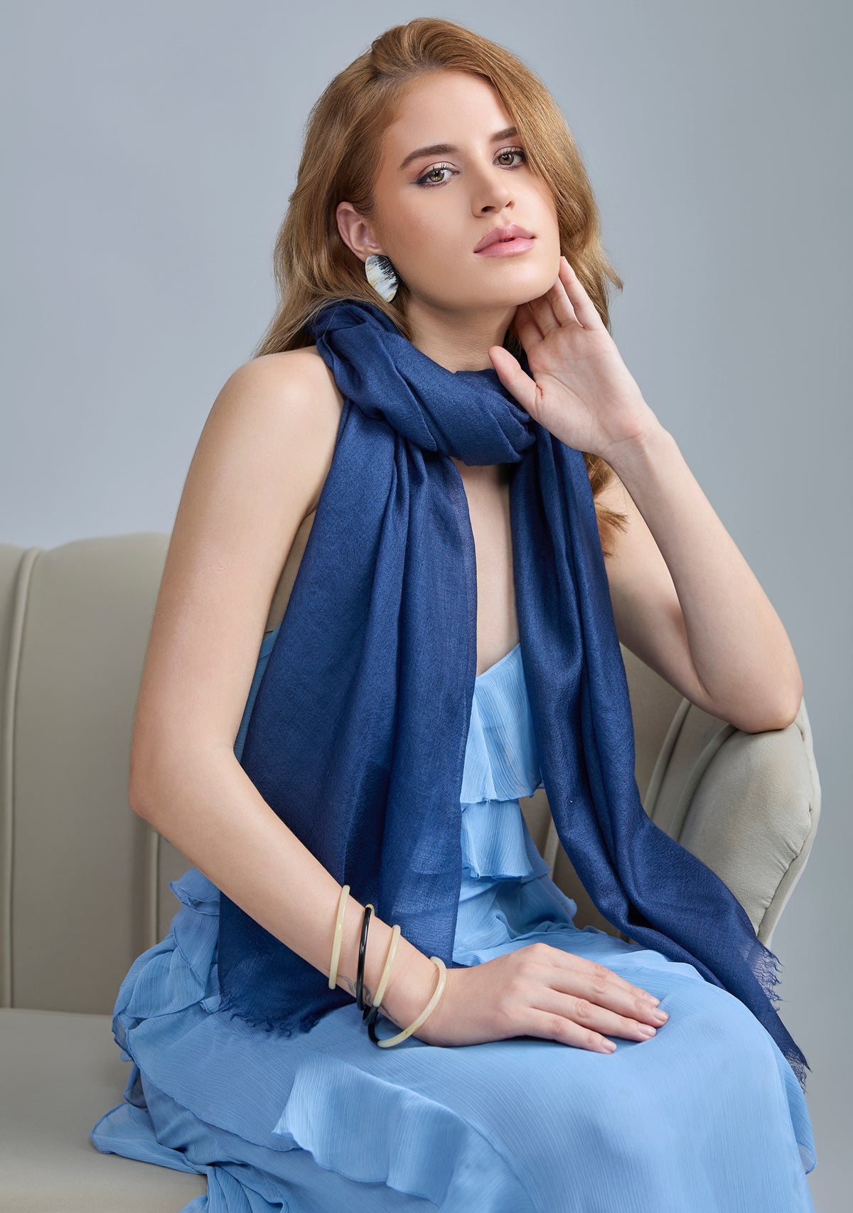 This Marine Blue Superfine Cashmere Pashmina Scarf is the most versatile accessory you'll ever own. Its lightweight and breathable weave offers year-round comfort with a supremely soft and fine texture, making it a favourite for both women and men.