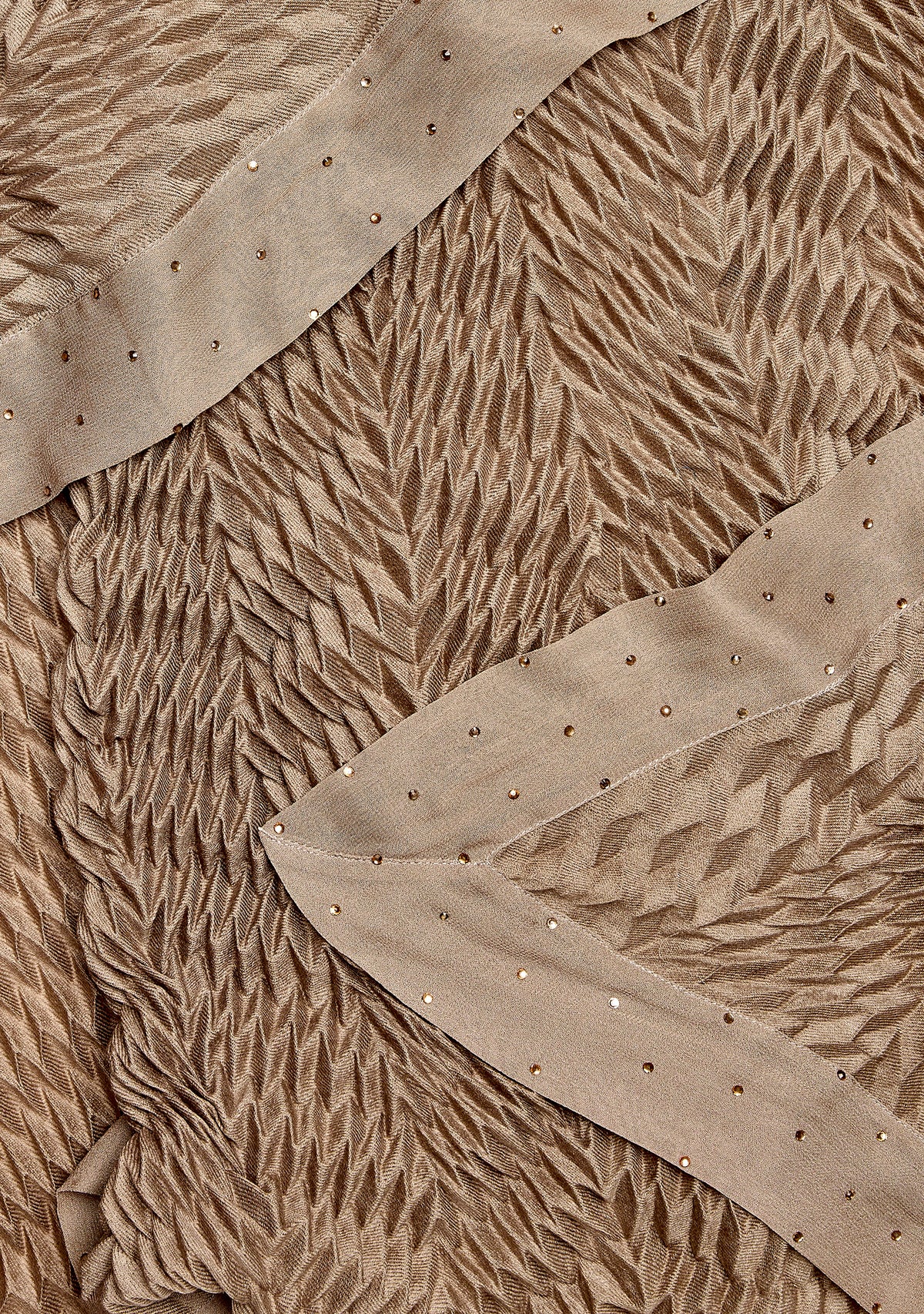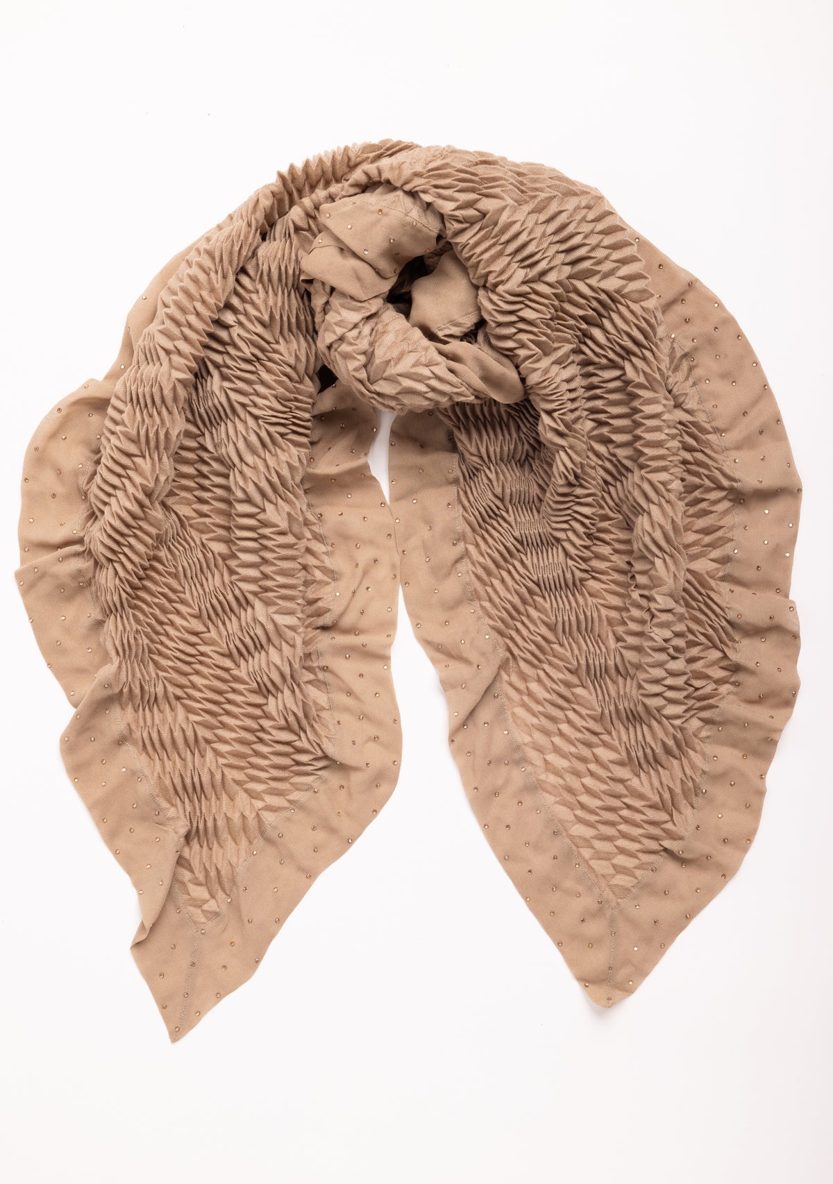 Natural Pleated Wool & Silk ScarfCrystal Border