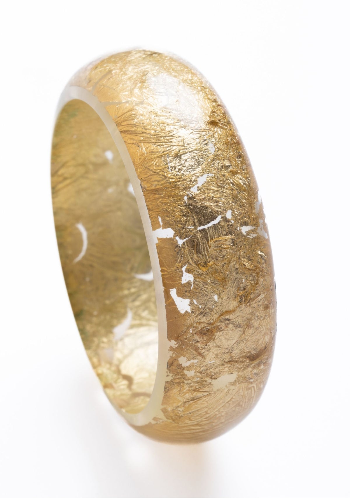 This gold resin bangle exudes bold elegance and contemporary flair. Crafted from high-quality resin with a striking gold finish, this bangle adds a luxurious touch to any outfit. Its thick, round design makes a statement while remaining lightweight and comfortable to wear. Whether paired with casual attire or worn as a standout accessory for an evening look, this versatile bangle is perfect for adding a modern touch of glamour to your style.