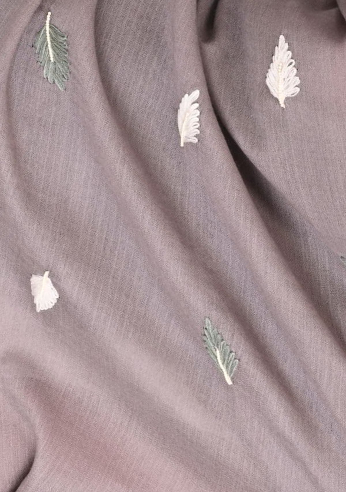 Mousse Wool & Silk ScarfIvory & Mousse Embroidery and Ivory Pearls