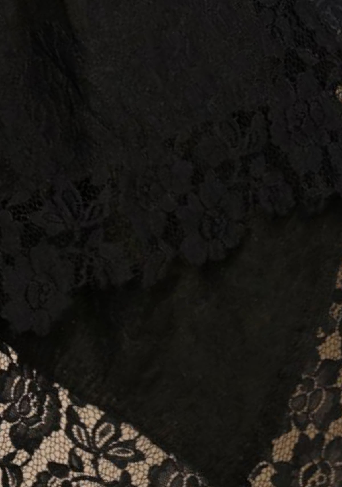 A classic black knitted sleeveless jacket crafted from a very soft fine wool. The look of this jacket is further elevated with a tonal black floral lace border making it a unique accessory that can be worn over any casual attire or to keep stylishly warm whilst traveling.
