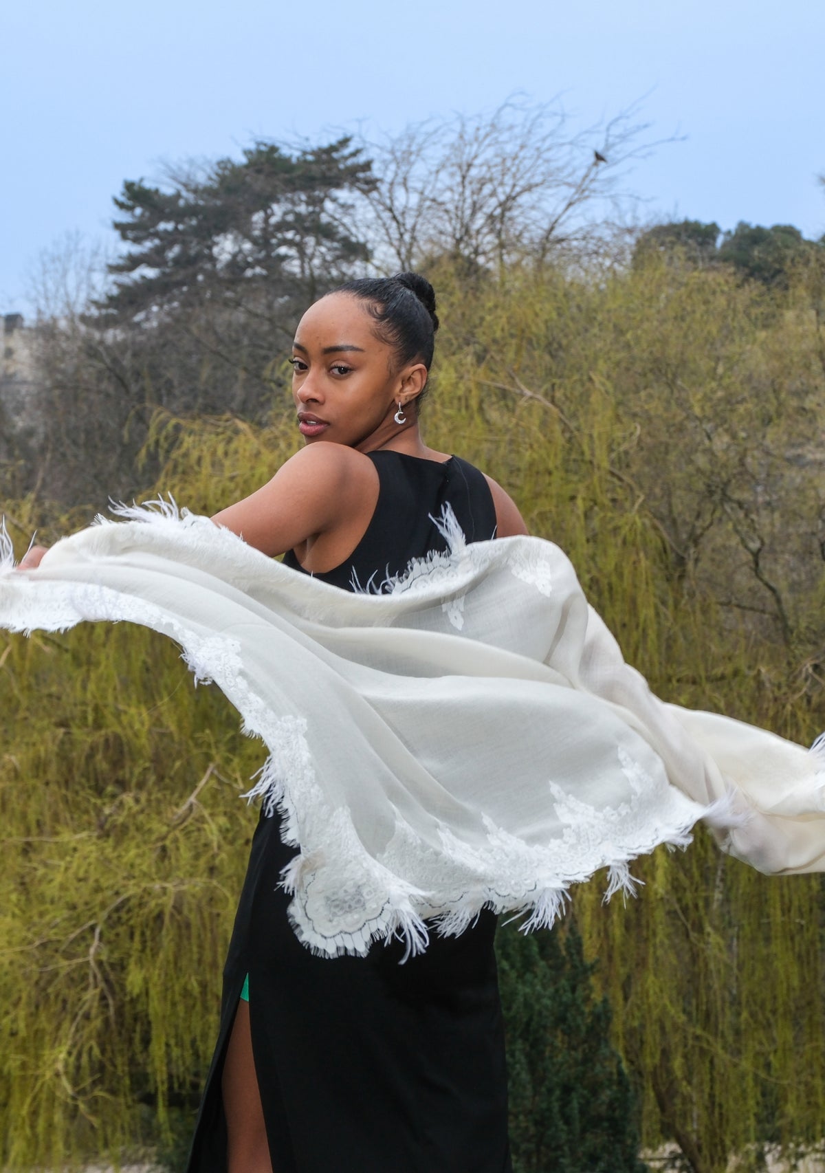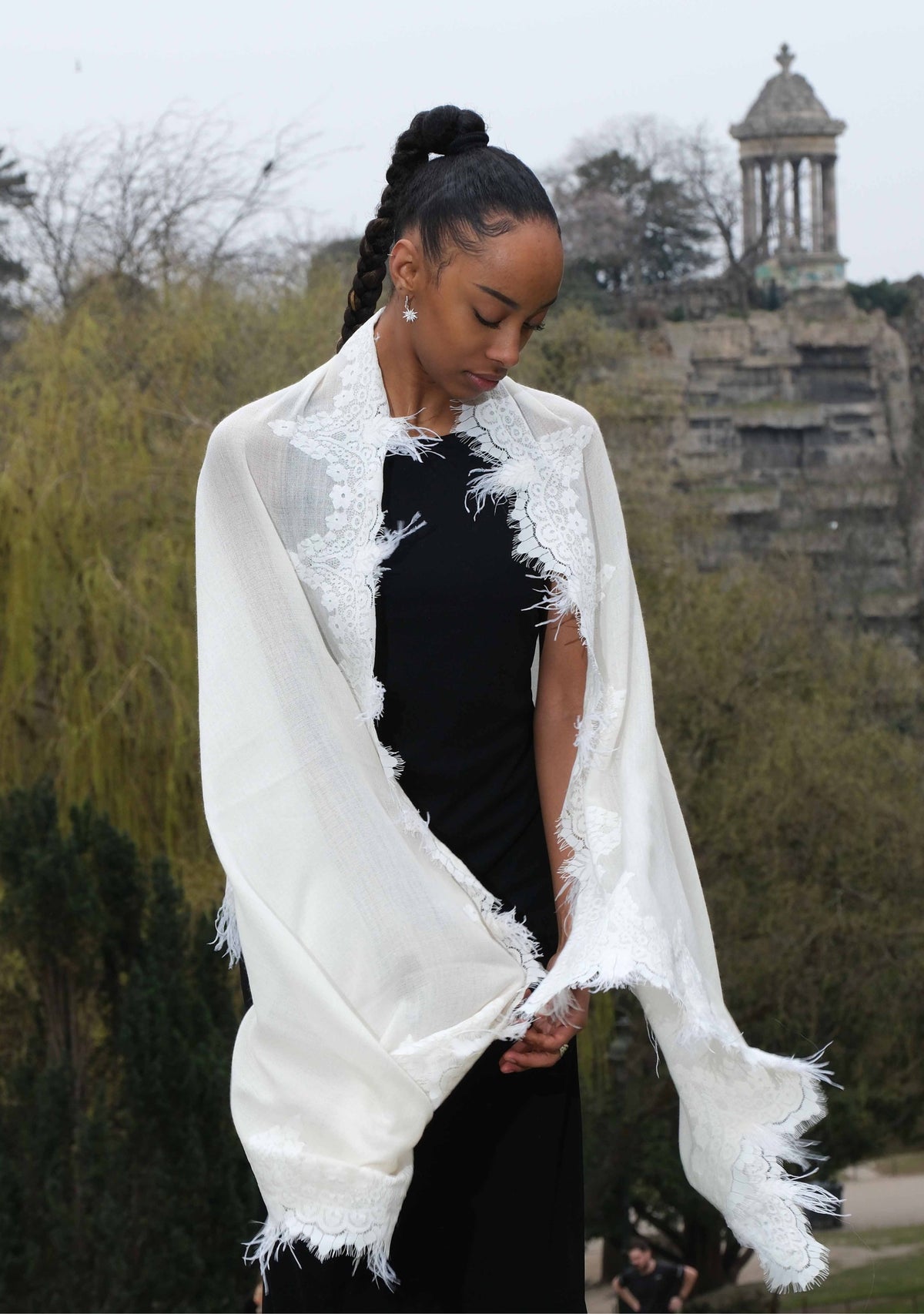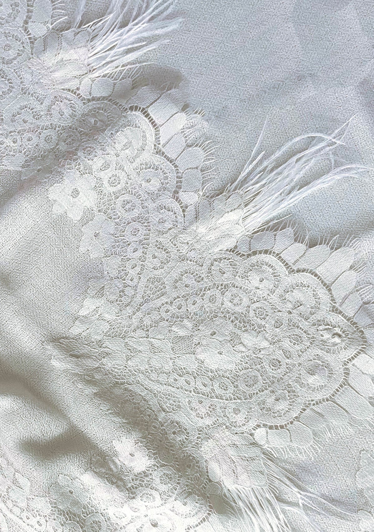 Ivory Cashmere ScarfIvory Lace & Feathers
