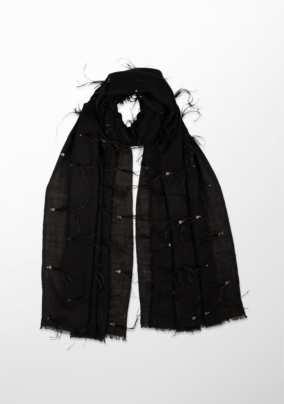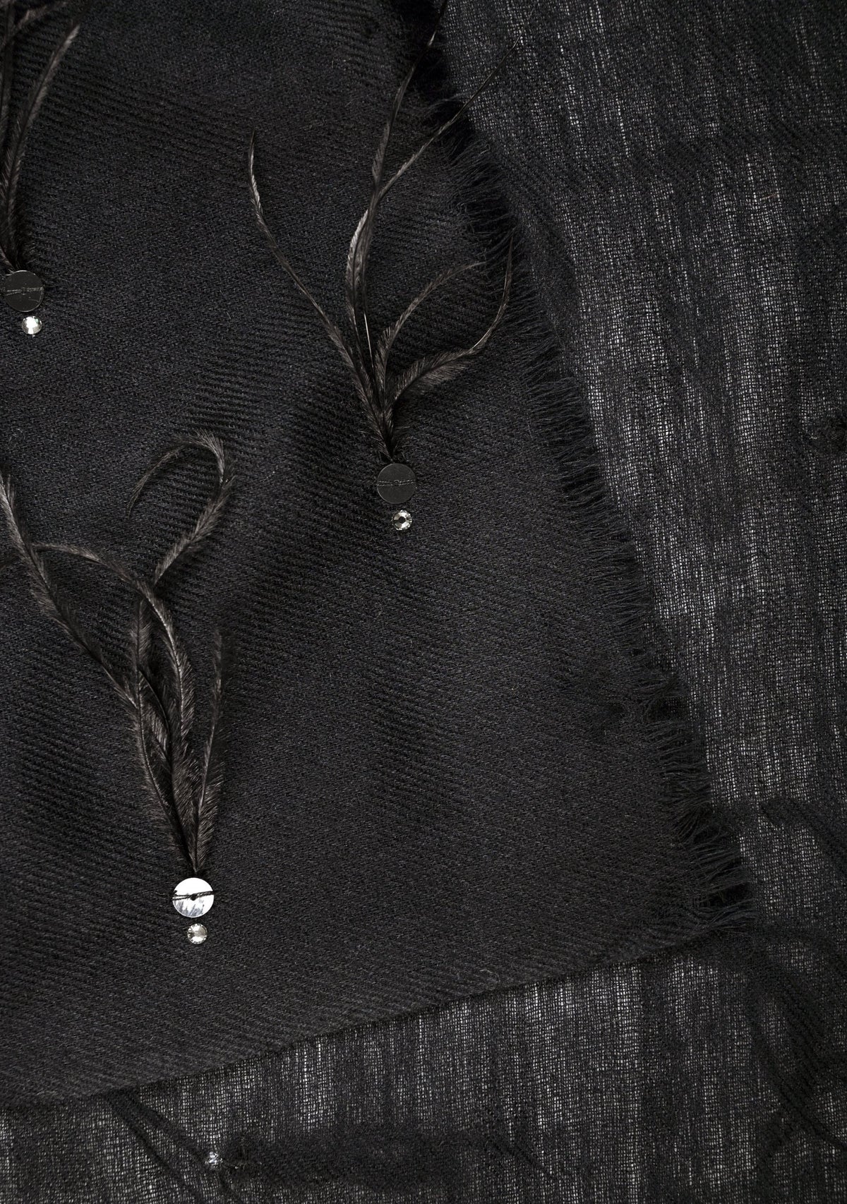 Black Cashmere Pashmina ScarfBlack Ostrich Feathers, Sequin & Silver Swarovski Crystal