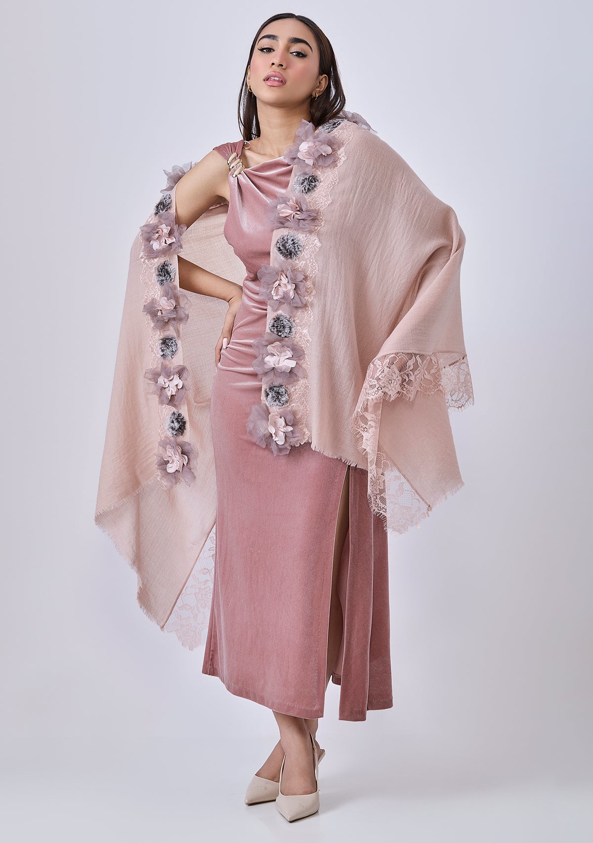 Lt. Copper Cashmere ScarfLace, 3D Appliqués & Gray faux Fur Pom Poms Sale price$341.00 USD