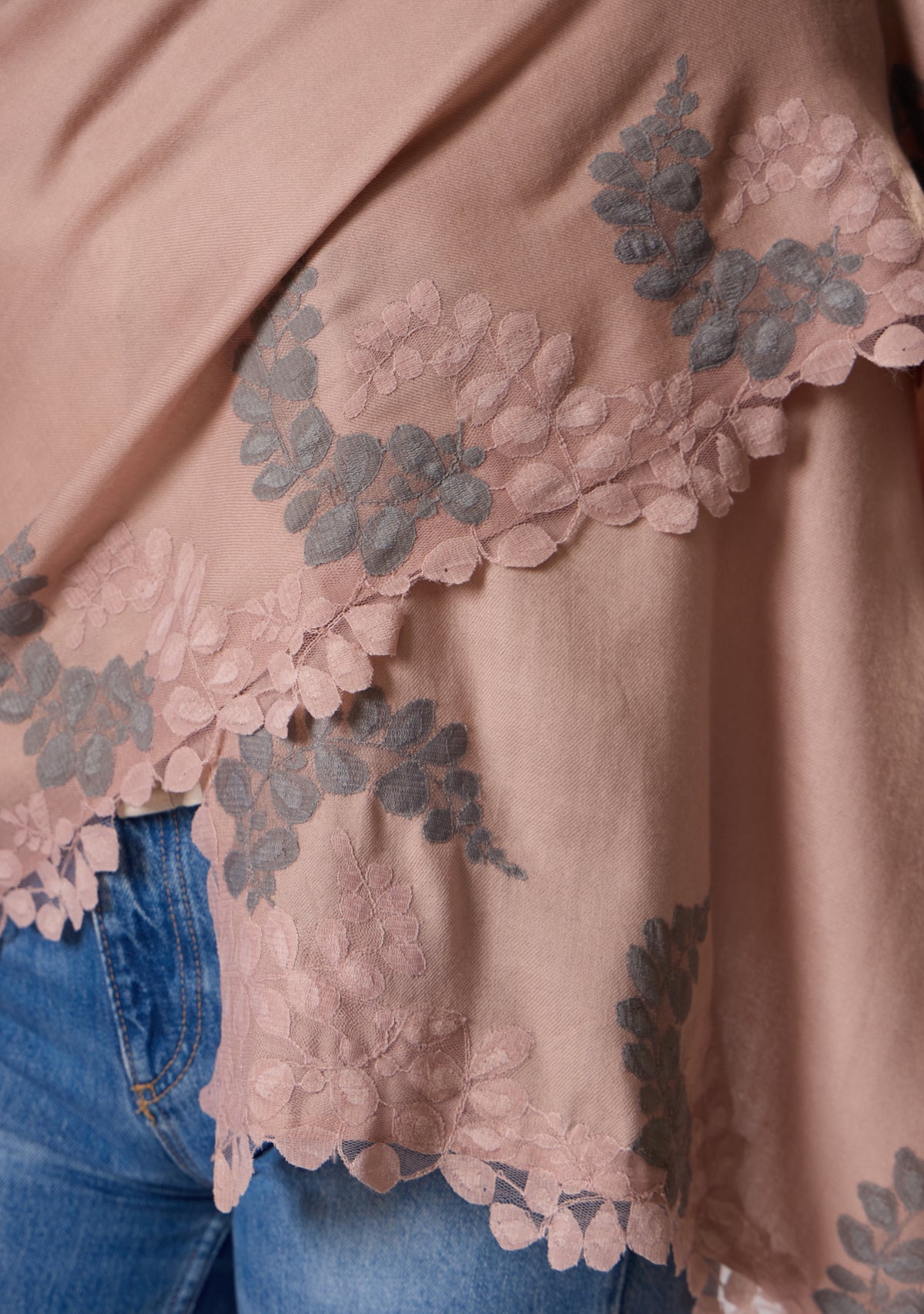 Lt. Copper Silk & Wool Scarf Lt. Copper & Mousse Lace