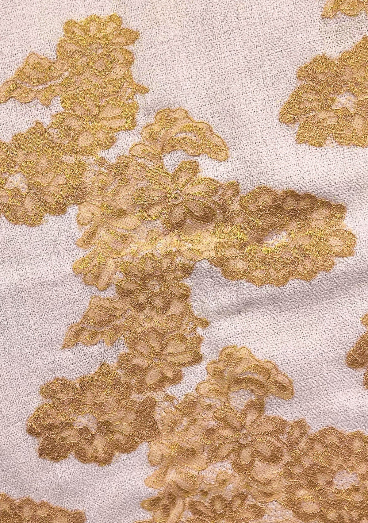Beige Cashmere ScarfGold Lace