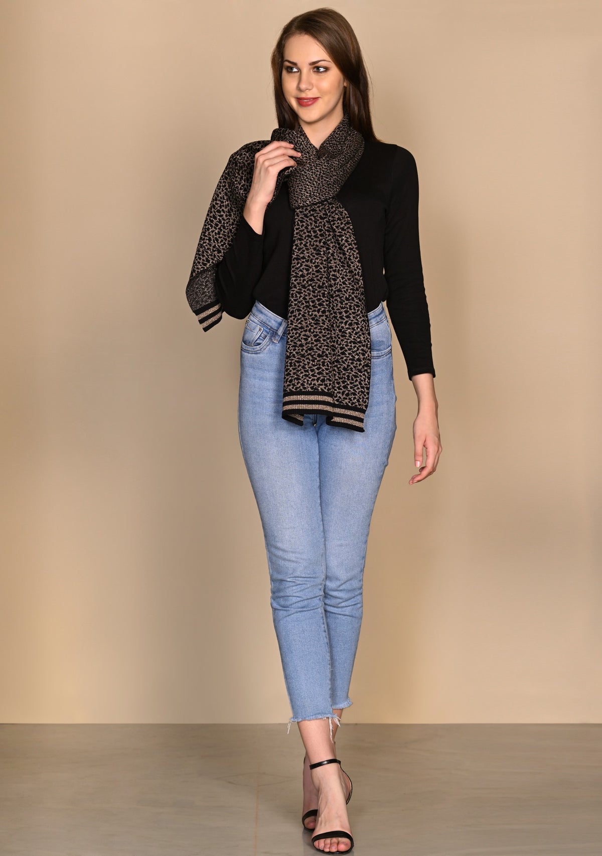 Black & Tobacco Brown Cotton & Viscose Leopard JacquardScarf Black & Tobacco Brown Lurex Stripes