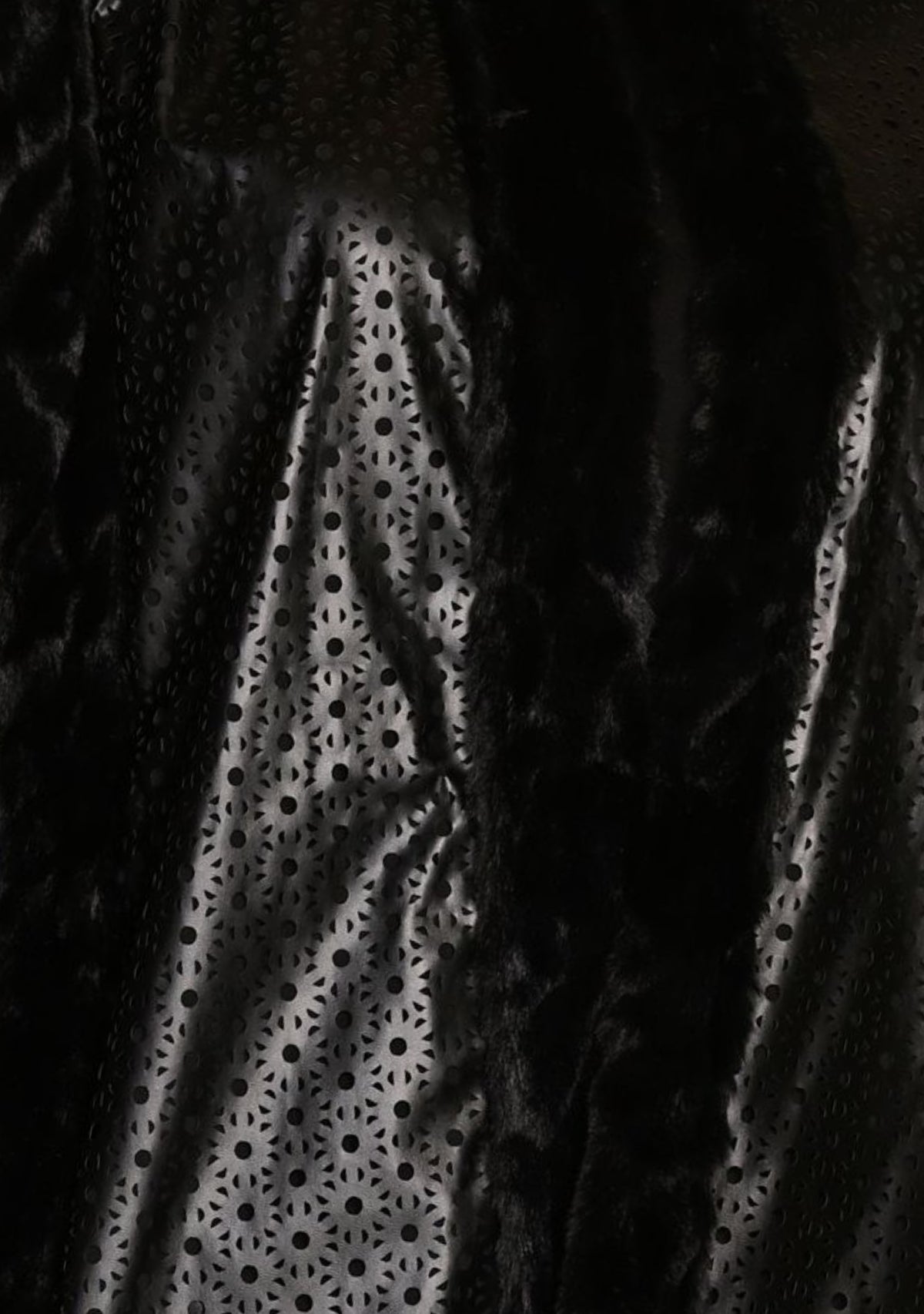 Looking for something unique and stunning that no one else has? The Andrea from Maneesha Ruia is what you must get. This is an open sleeveless jacket made from a combination of black lazercut faux leather front panels and a charcoal melange knitted fine wool back. With partly tonal and partly contrasting black faux fur trimming on the neck and border, this vest-like jacket can amp up any casual or formal wear.