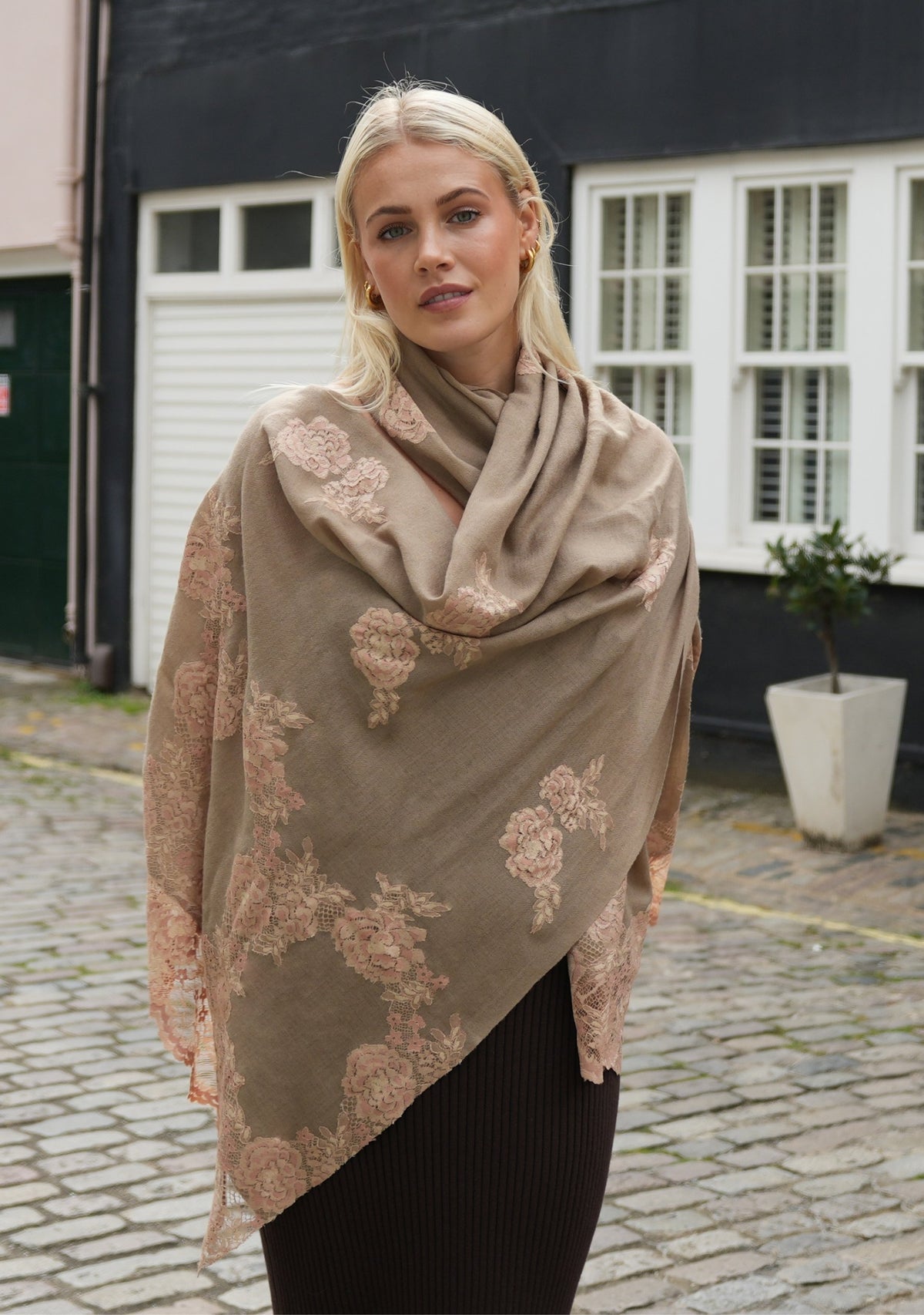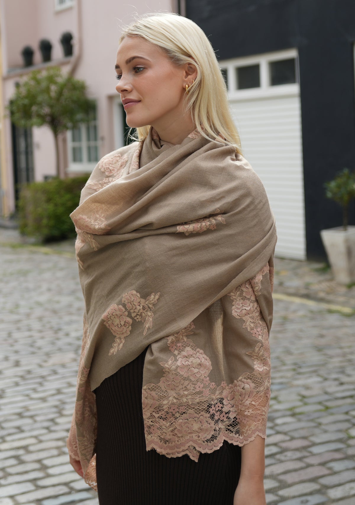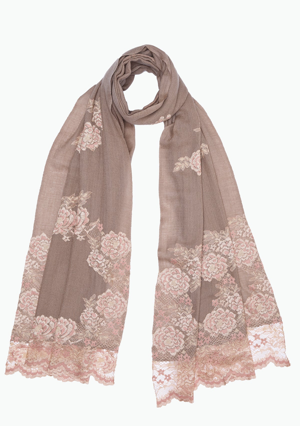 Natural Cashmere ScarfCopper & Beige Lace
