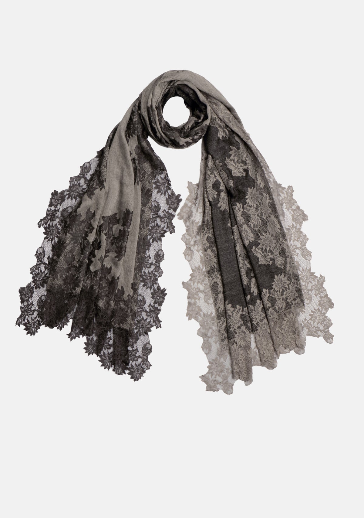 Black & Taupe Reversible Wool & Silk ScarfBlack & Taupe Lace