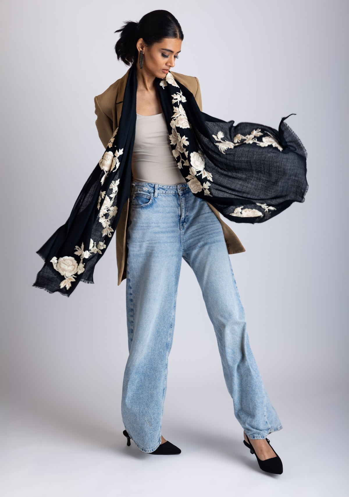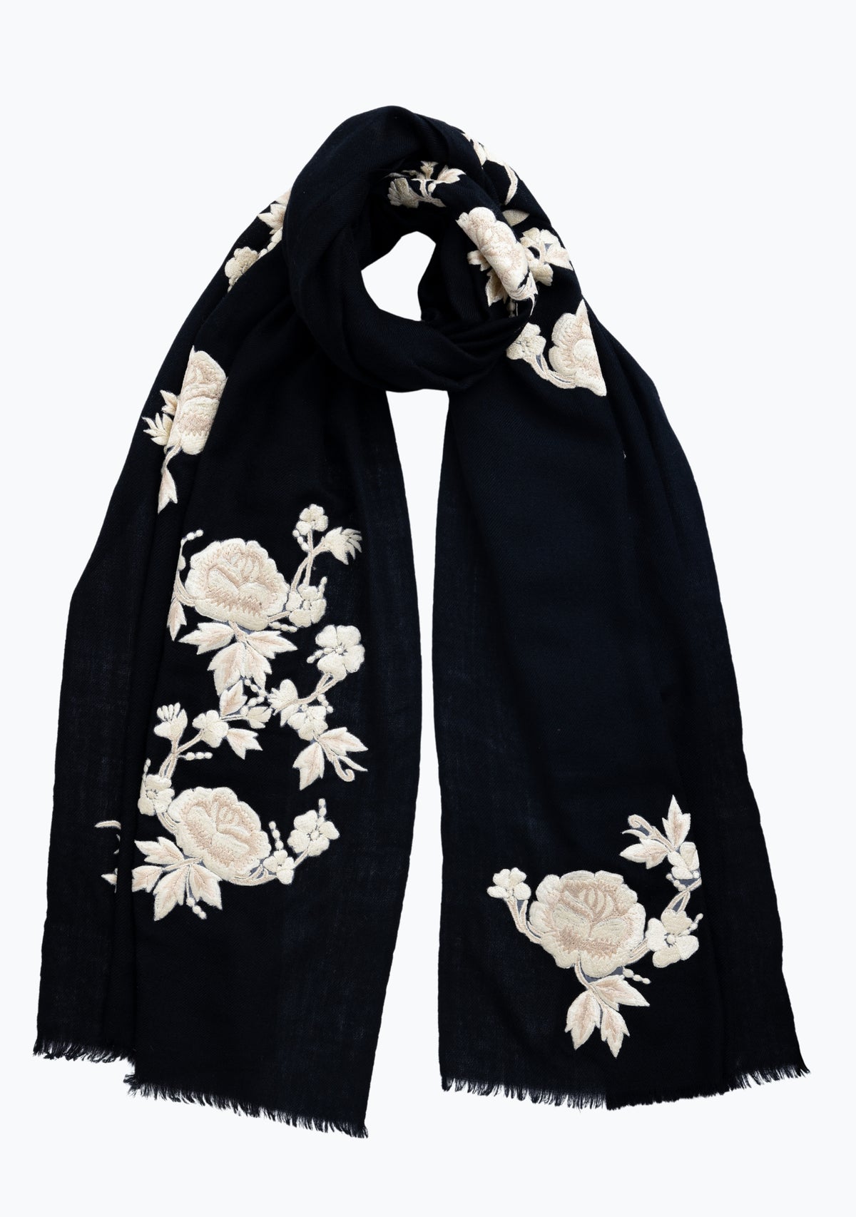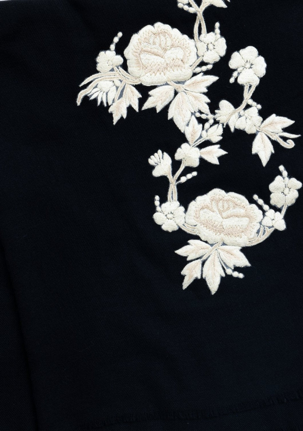 Black Cashmere ScarfIvory & Beige Embroidery
