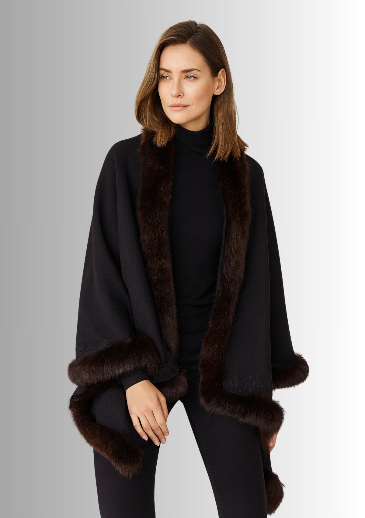 Black Cashmere StoleBlack Fox Fur & Floral Lace