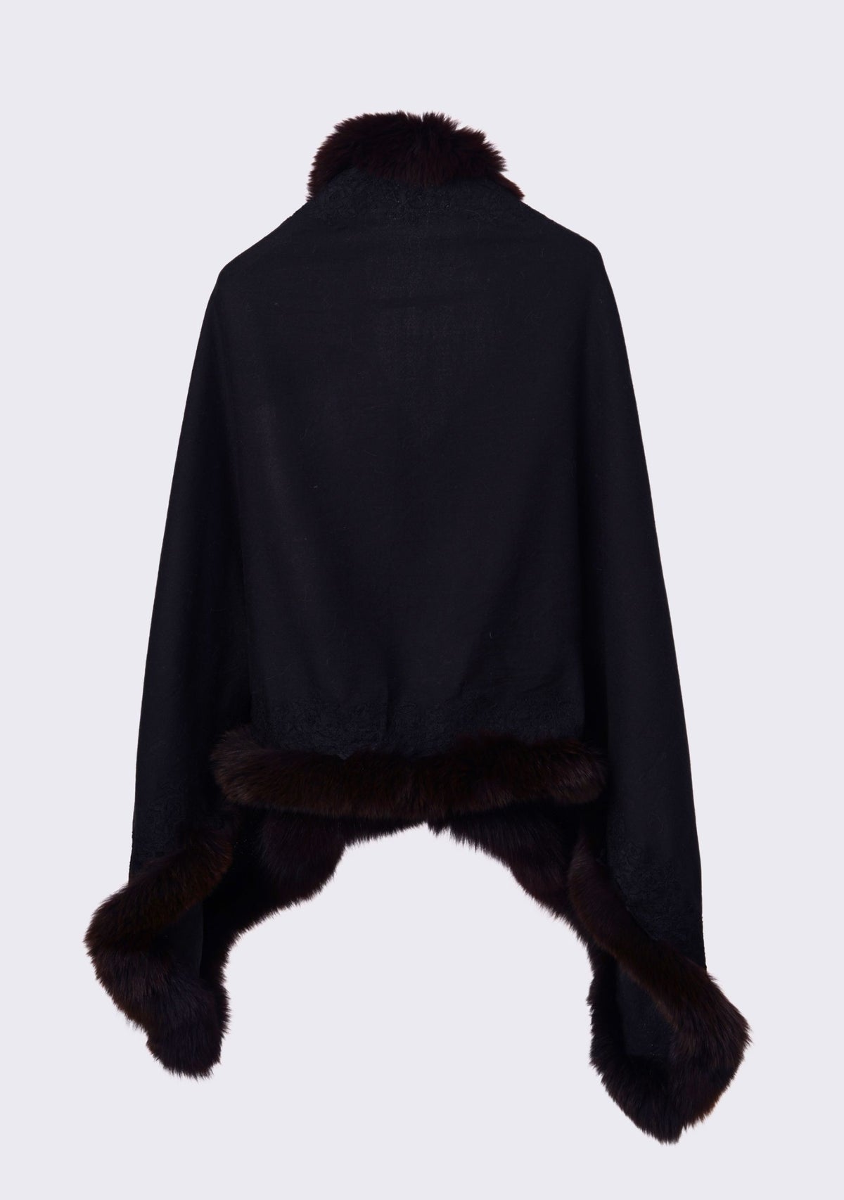 Black Cashmere wrapBrown Fox Fur & Floral Lace