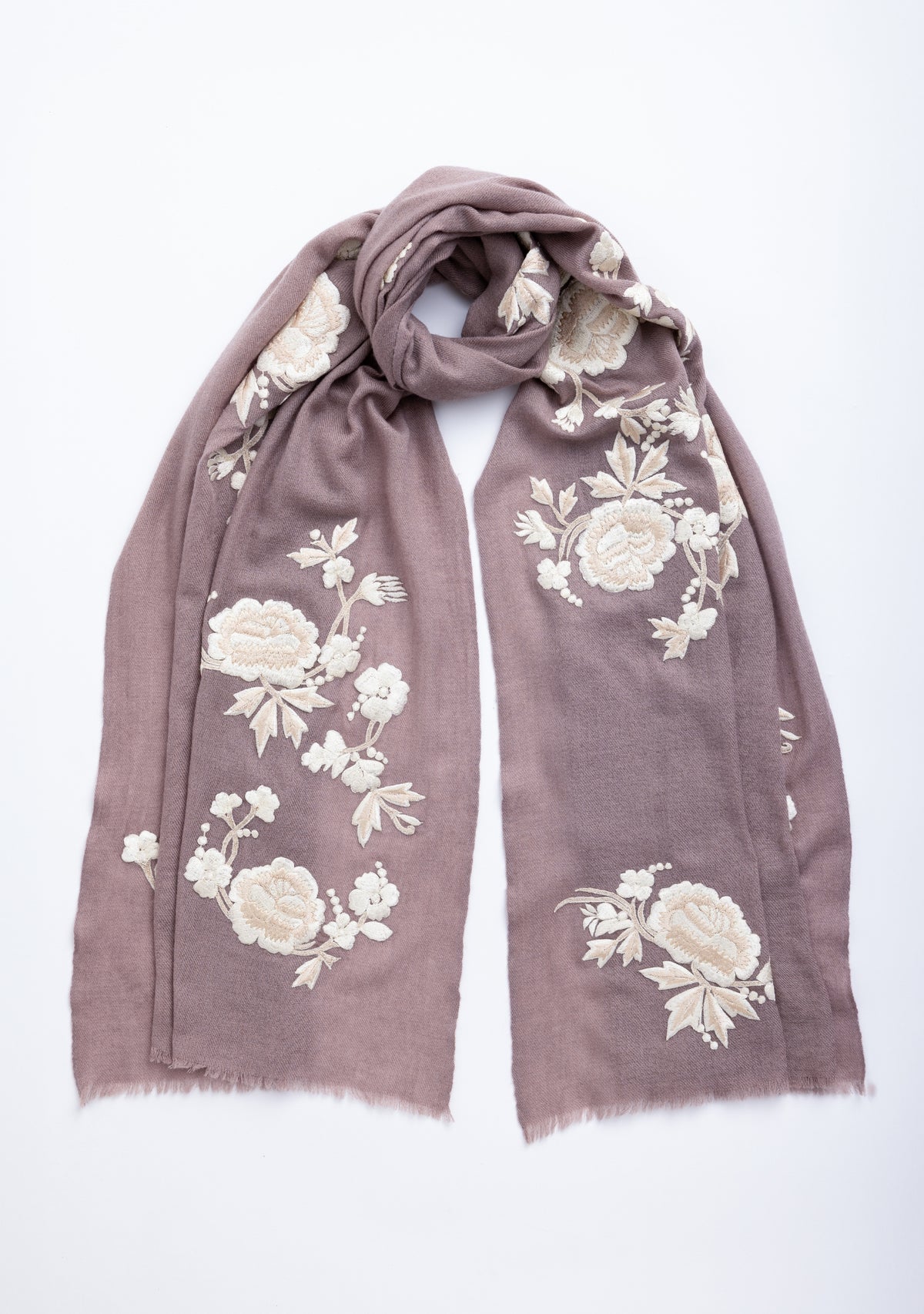 Copper Cashmere ScarfIvory & Beige Embroidery