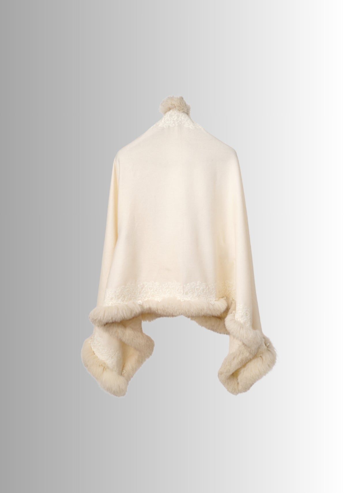 Ivory Cashmere StoleIvory Fox Fur & Floral Lace