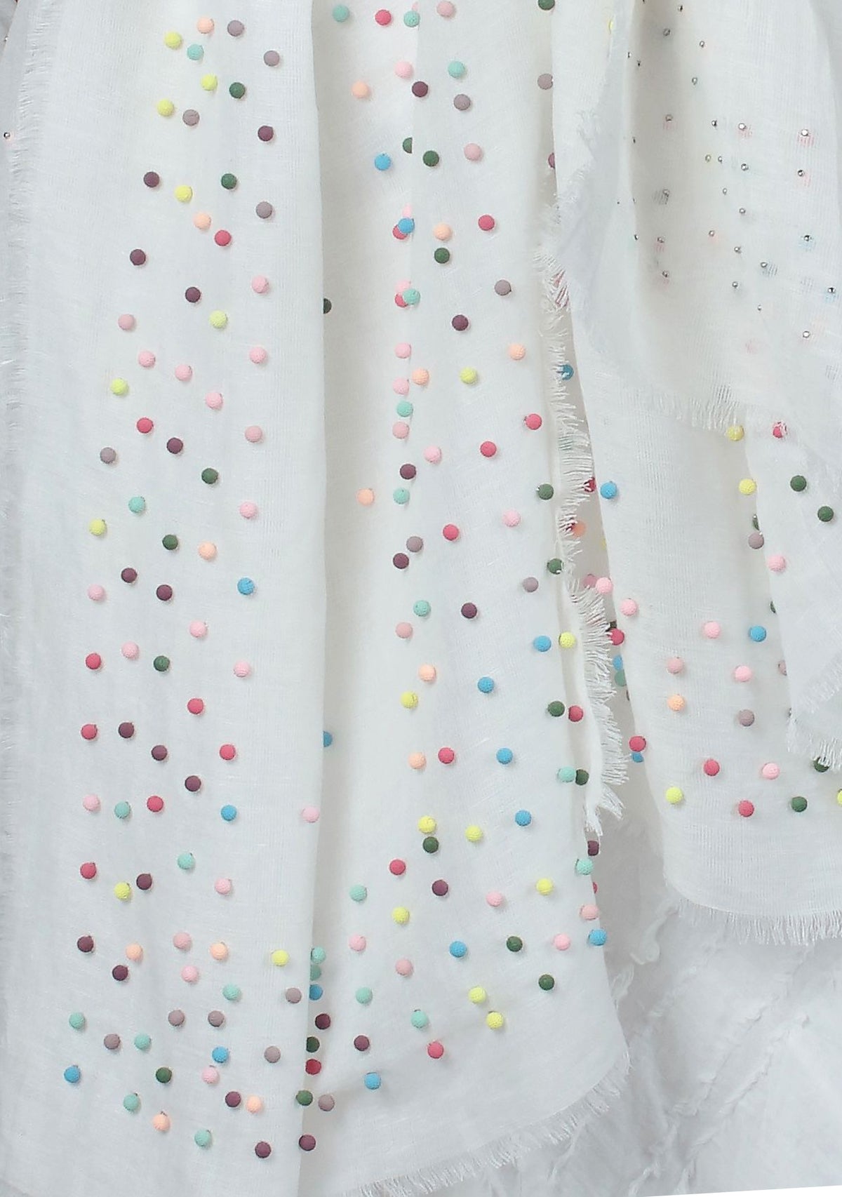 Ivory Linen & Modal Scarf Multi-colored Pearls Sale price$257.00 USD
