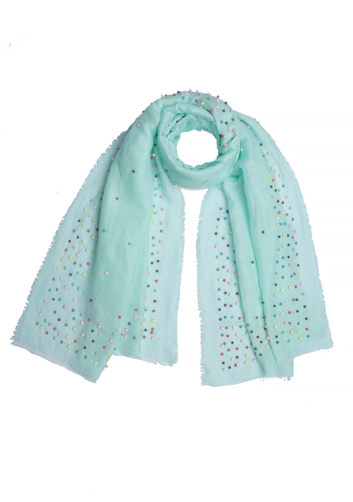 Lt. Mint Linen & Modal ScarfMulti-colored Pearls