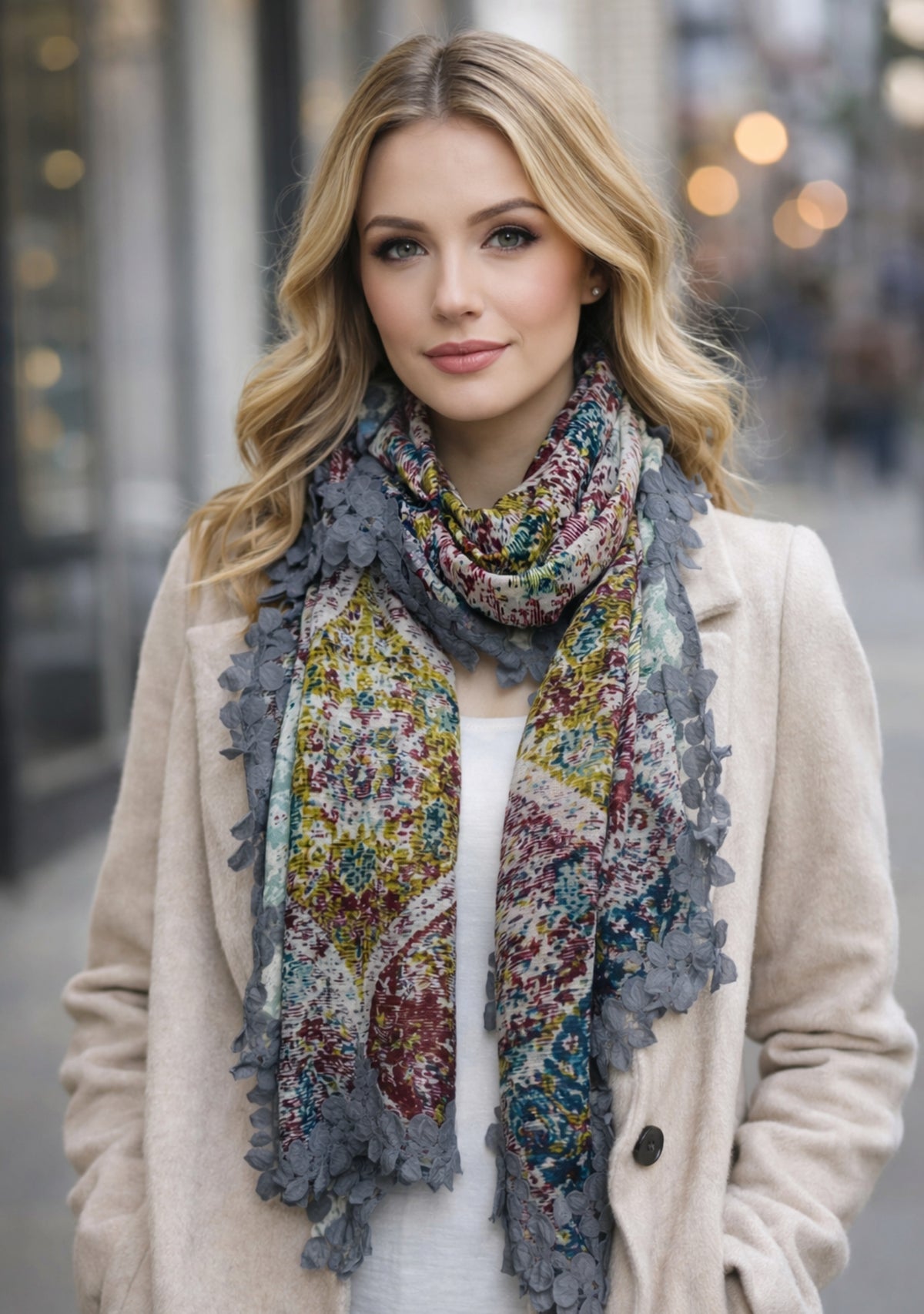Marrakesh Print Modal & Silk Scarf Mousse Lace